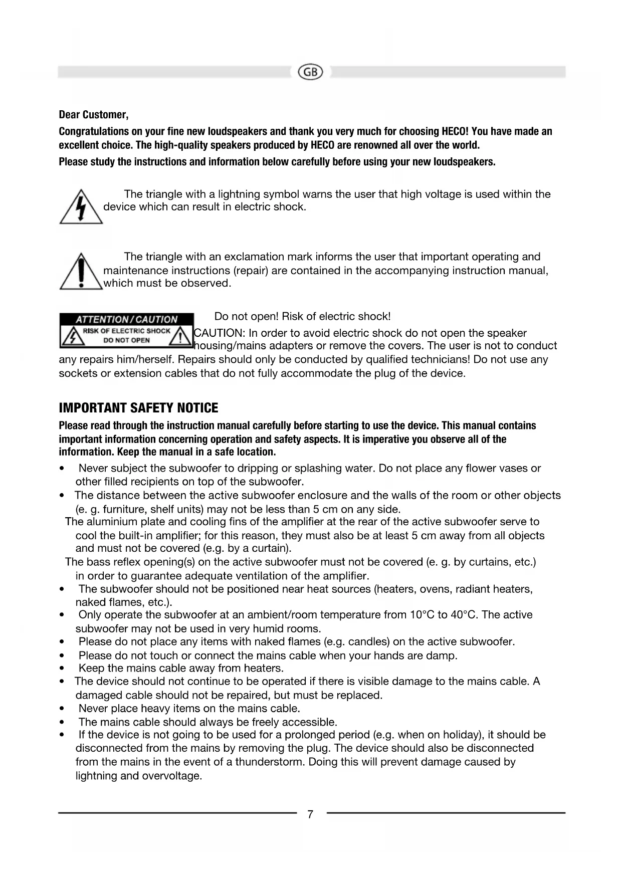 - FolgeschädenanfremdenGeräten•KostenerstattungbeiSchadensbehebungdurchDritteohneunservorheriges Einverständnis. Congratulations! You have made a wise selection in becoming the owner of a HECO HiFi equipment. Due to high quality HECO HiFi products have earned an excellent reputation through the western world. And this high quality standard enables us to grant a 5-years warranty for HECO HiFi speakers and a 2-years warranty for HECO HiFi-electronic components. The equipments are checked and tested continously during the entire production process. In case you have problems with your HECO HiFi equipment, kindly observe the following: