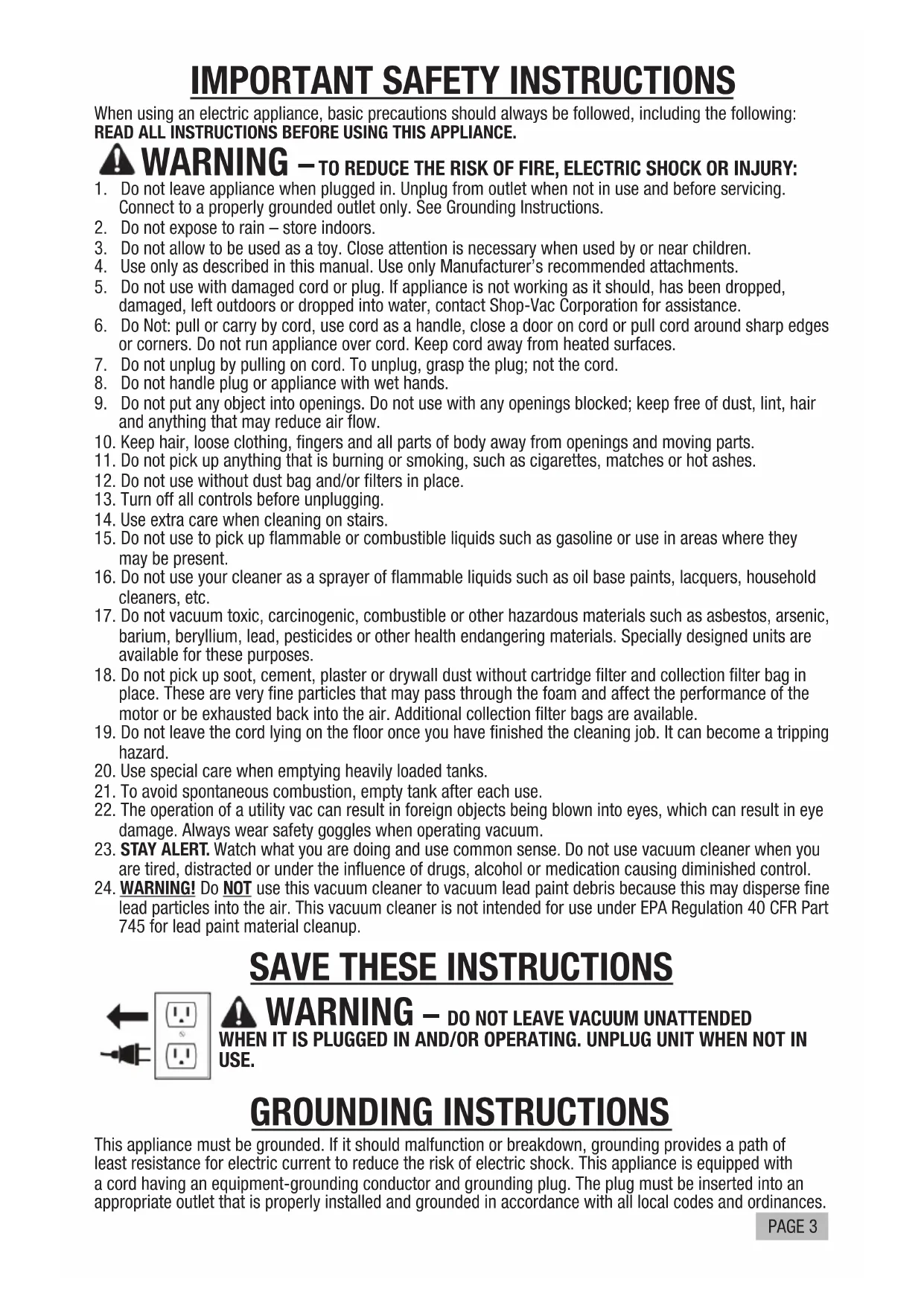 24. WARNING! Do NOT use this vacuum cleaner to vacuum lead paint debris because this may disperse fine