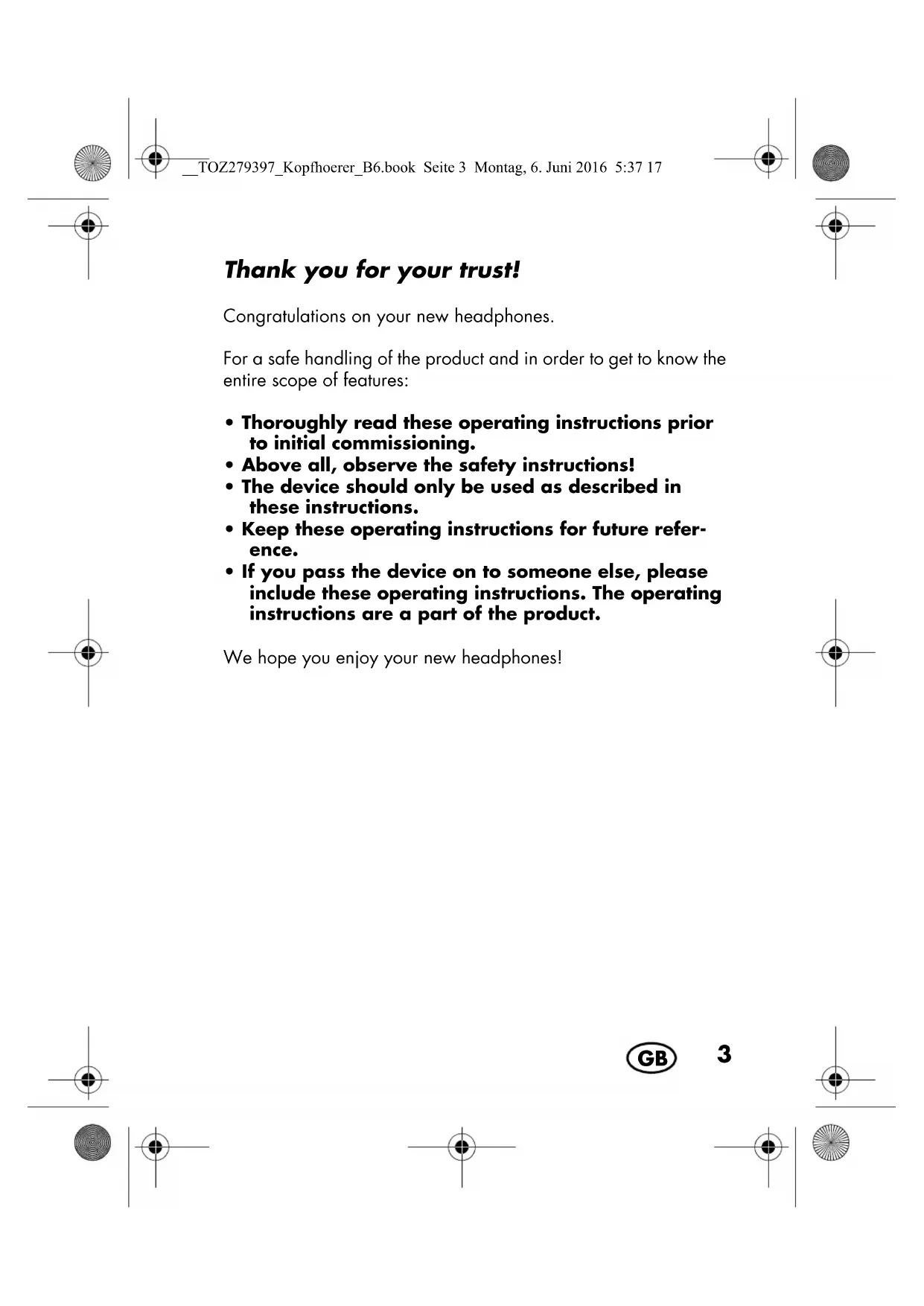 - If you pass the device on to someone else, please include these operating instructions. The operating instructions are a part of the product. We hope you enjoy your new headphones!