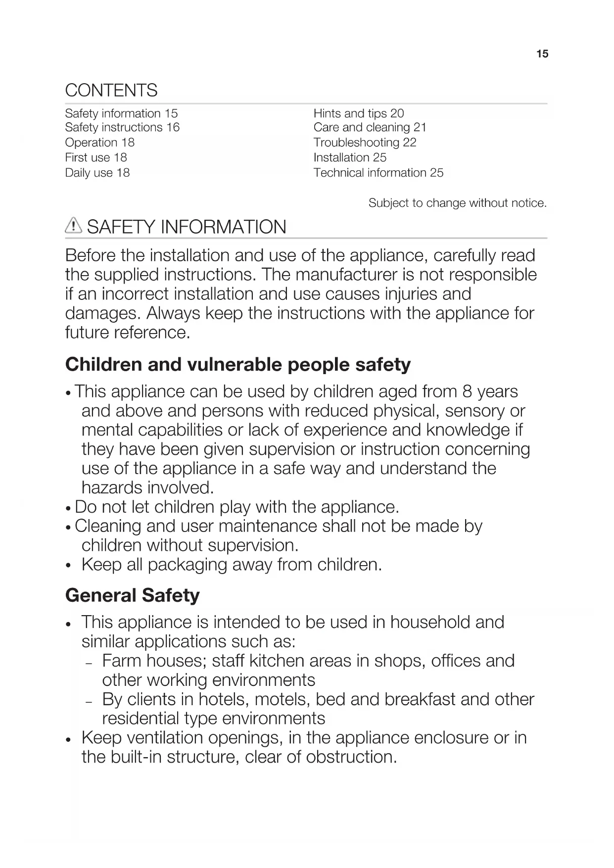 - This appliance can be used by children aged from 8 years and above and persons with reduced physical, sensory or mental capabilities or lack of experience and knowledge if they have been given supervision or instruction concerning use of the appliance in a safe way and understand the hazards involved.