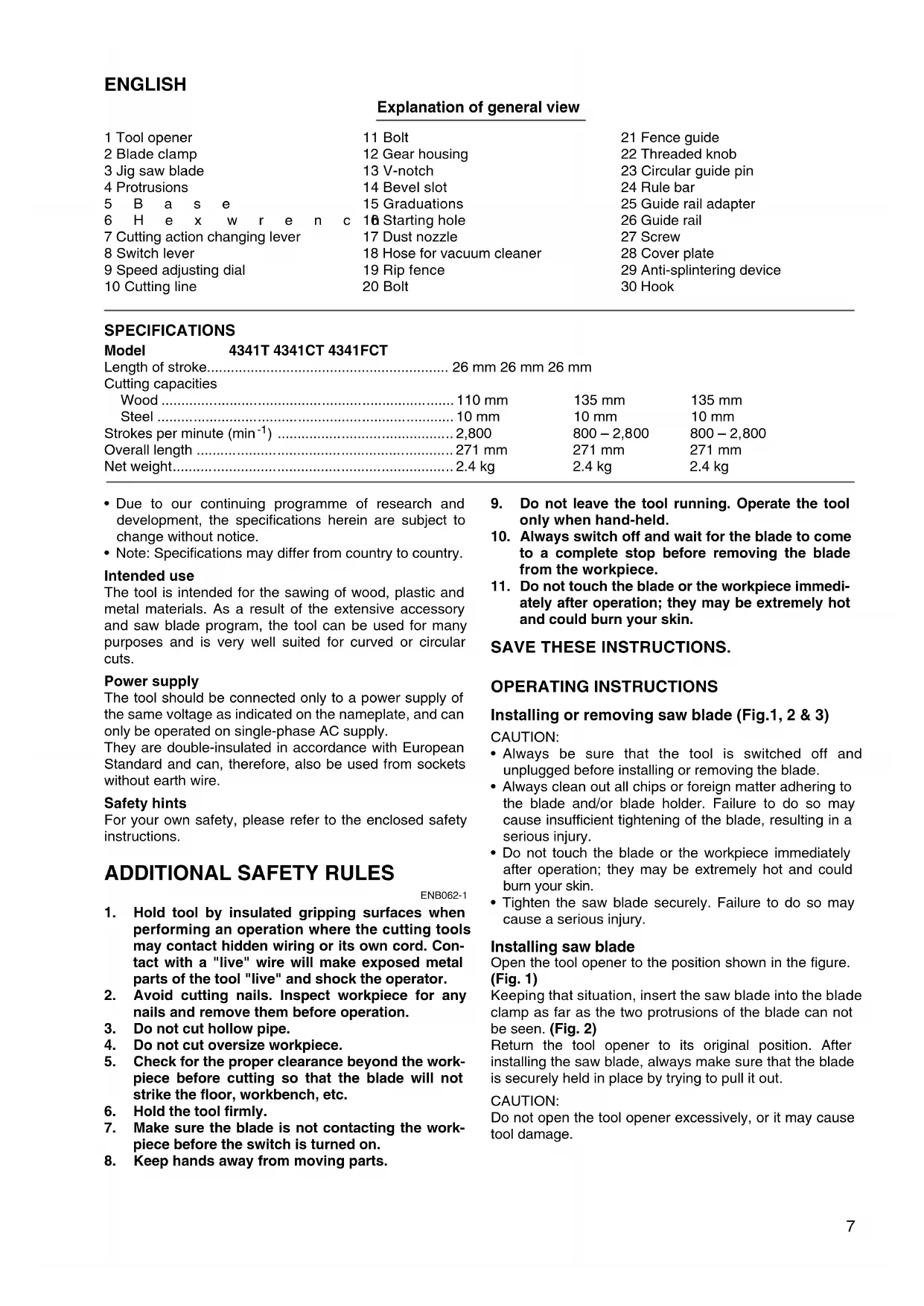 4341T - Electric saw MAKITA - Free user manual and instructions