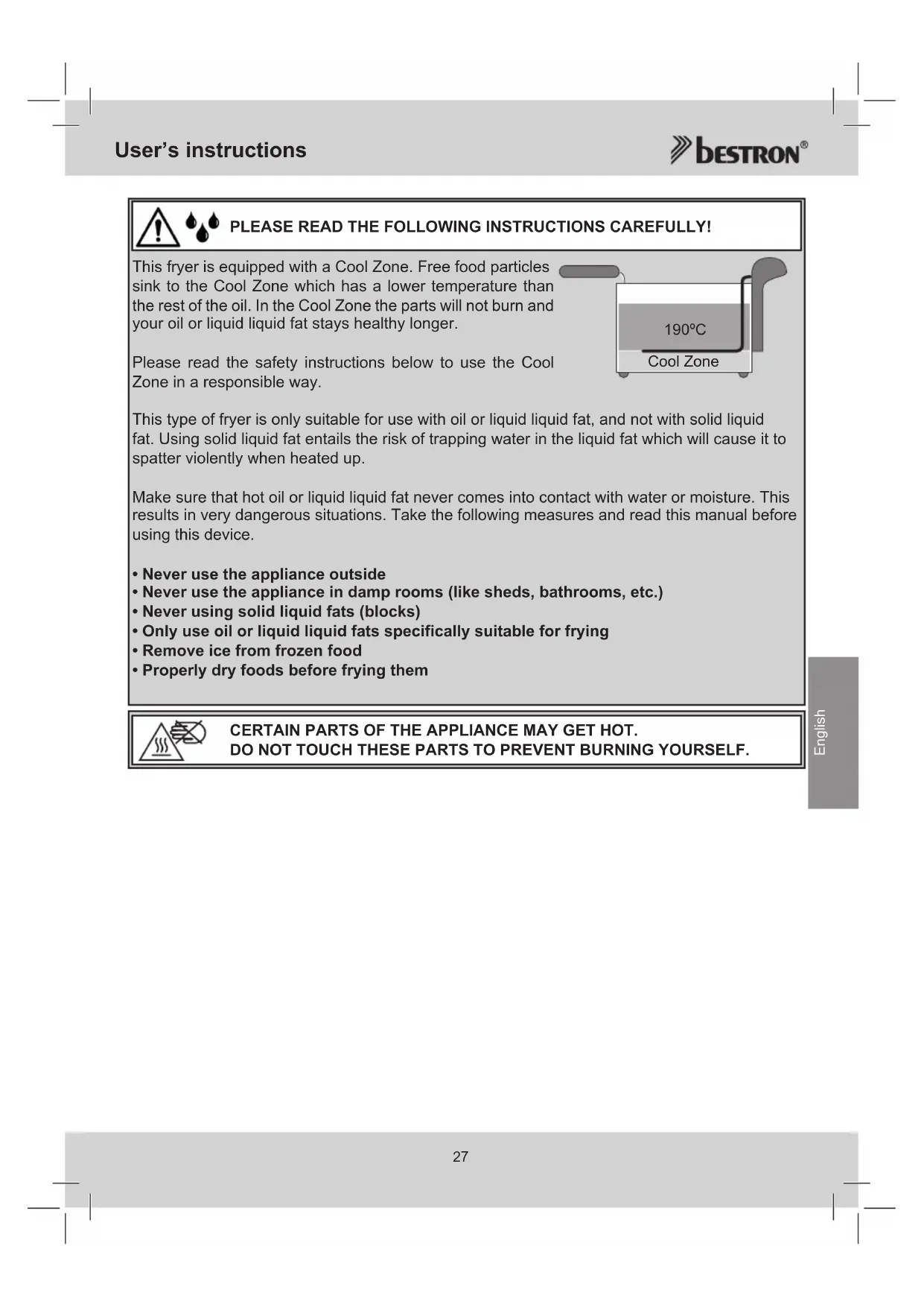 AF450B - Deep fryer BESTRON - Free user manual and instructions