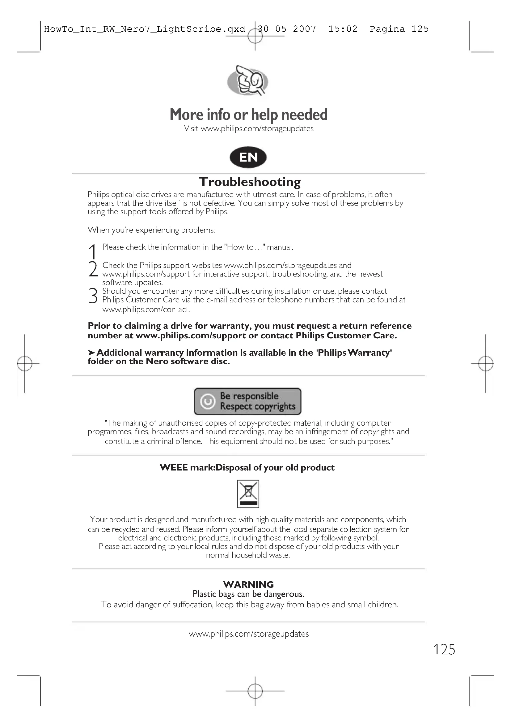 AonoaHnTeAbHa HhOpMaun no rapaHTn npecTaBAeHa B nAnke "Philips Warranty" kaTAlora Ha nporpaMMHom dNcke Nero.