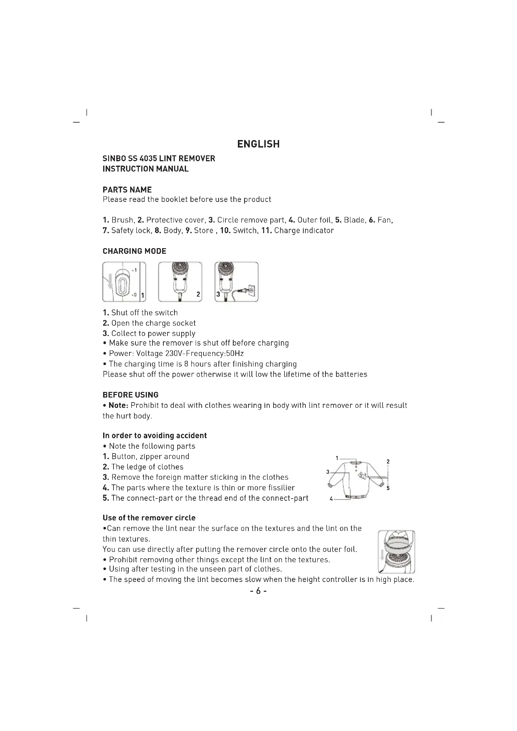 SS4035 - Electric epilator SINBO - Free user manual and instructions