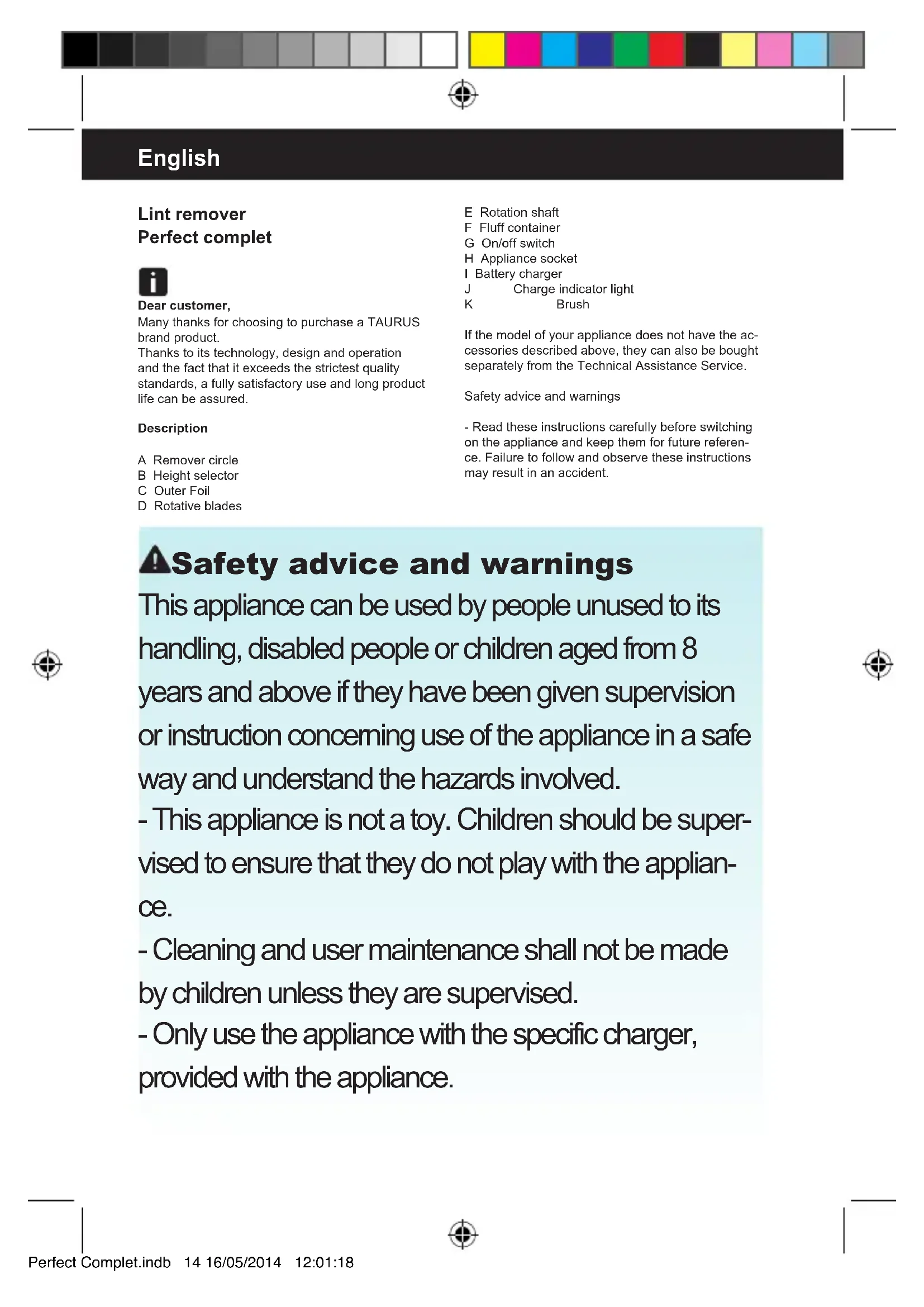 Download the instructions for your Electric epilator in PDF format for free! Find your manual 955100 - TAURUS and take your electronic device back in hand. On this page are published all the documents necessary for the use of your device. 955100 by TAURUS.