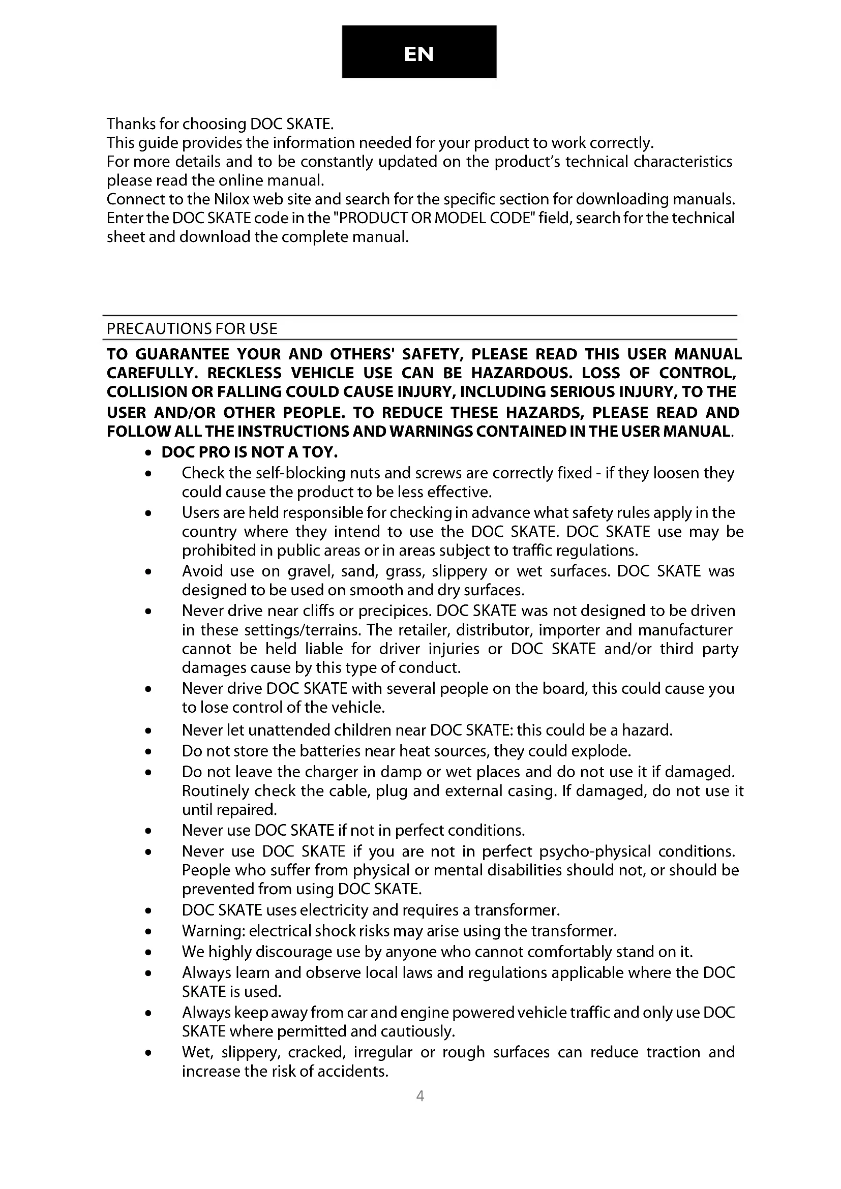 DOC SKATEBOARD - Electric skateboard NILOX - Free user manual and instructions