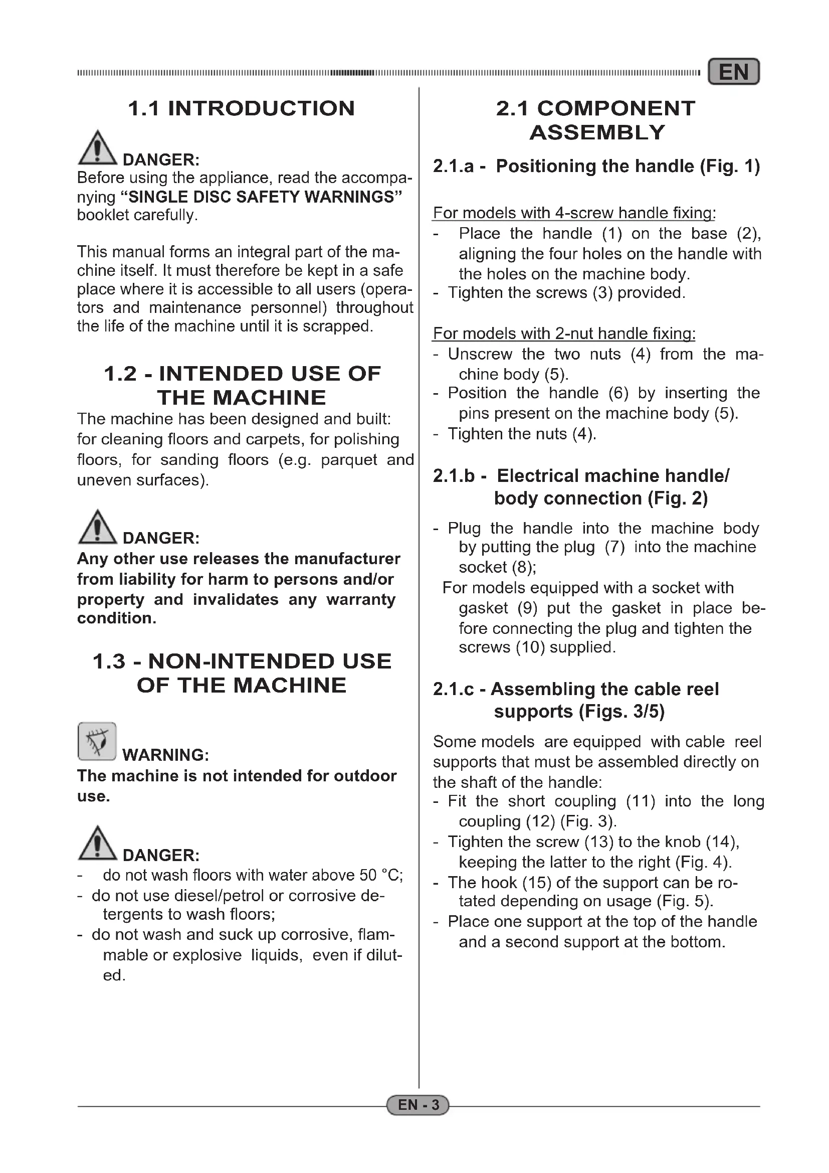 2.1.b - Electrical machine handle/ body connection (Fig. 2)