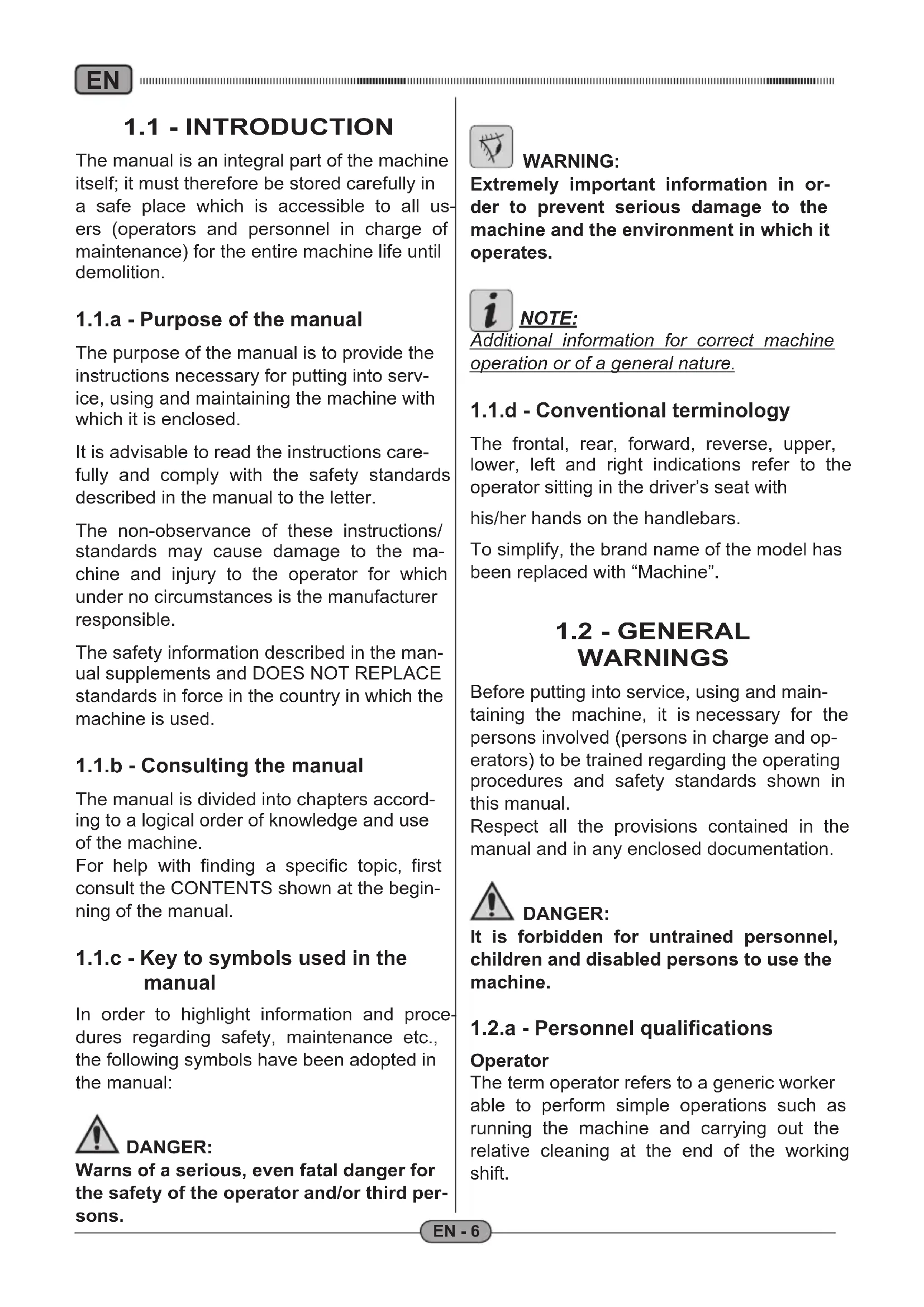 1.1.c Key to symbols used in the manual EN-6
