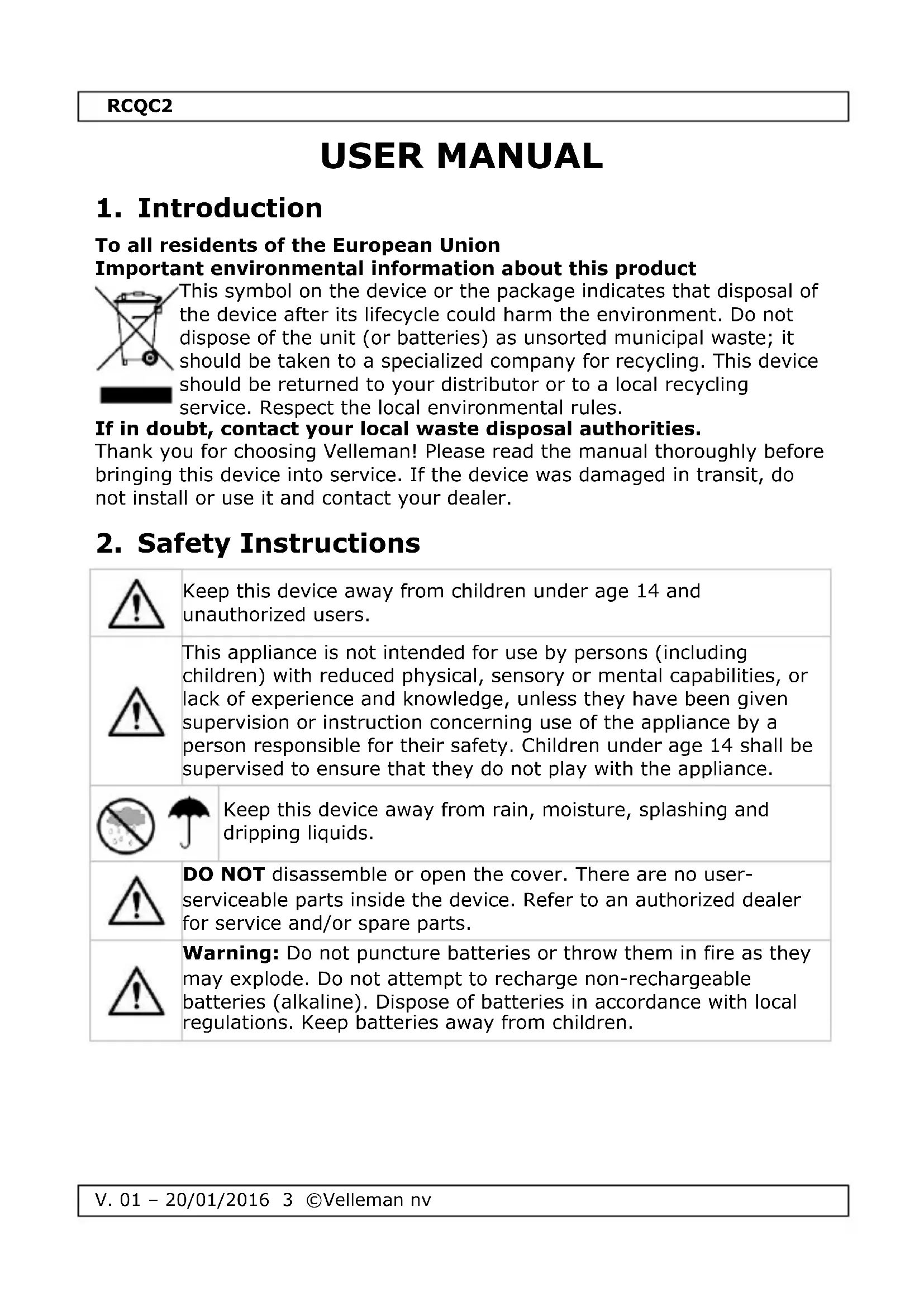 USER MANUAL RCQC2 VELLEMAN