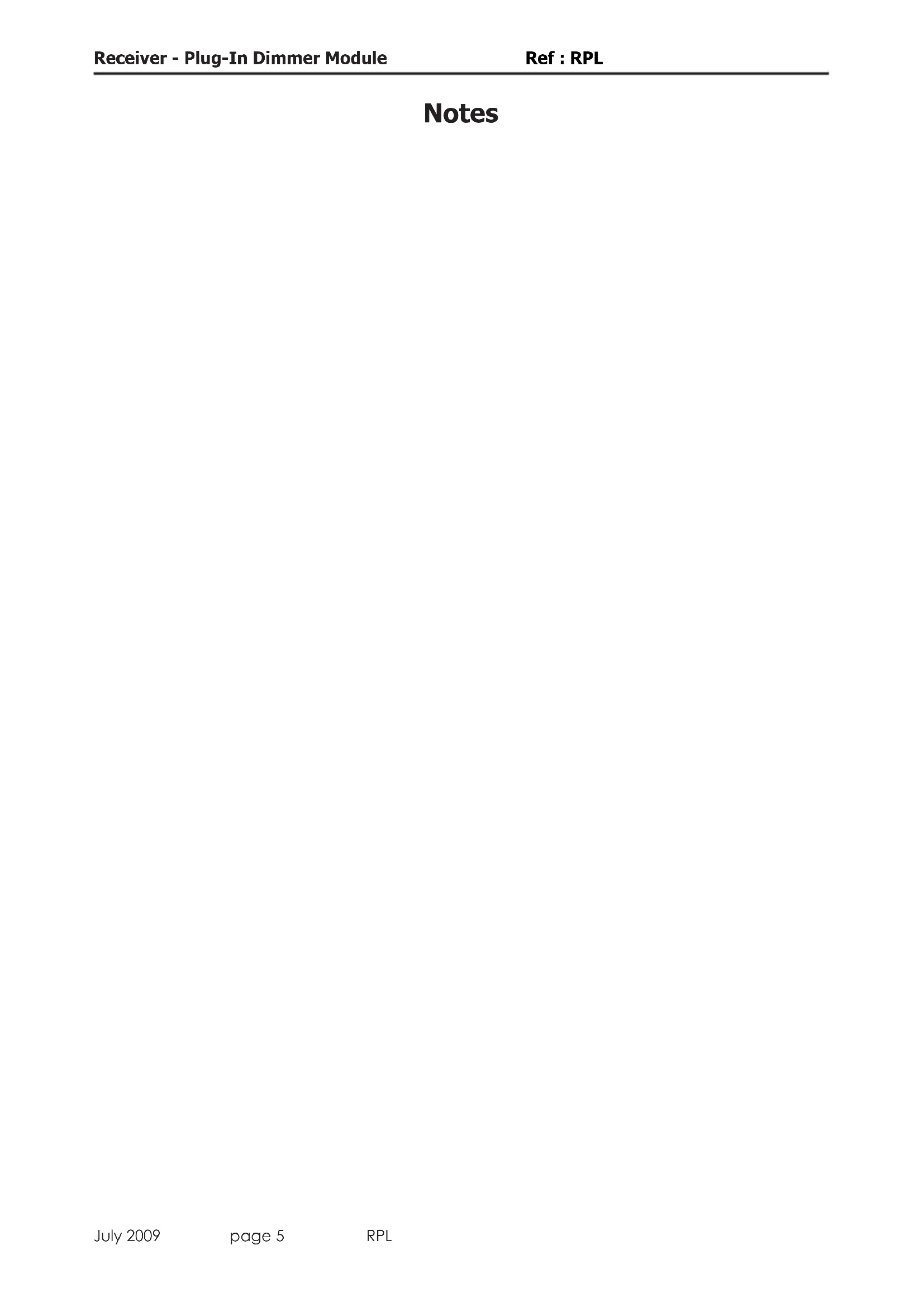 from step 1. General information - The RPL Lamp module can be congured to respond to up to 32 X10 addresses. - The led will blink red when ON/OFF commands are received.Receiver - Plug-In Dimmer Module Ref : RPL July 2009 page 7 RPL To reset all lamp module addresses
