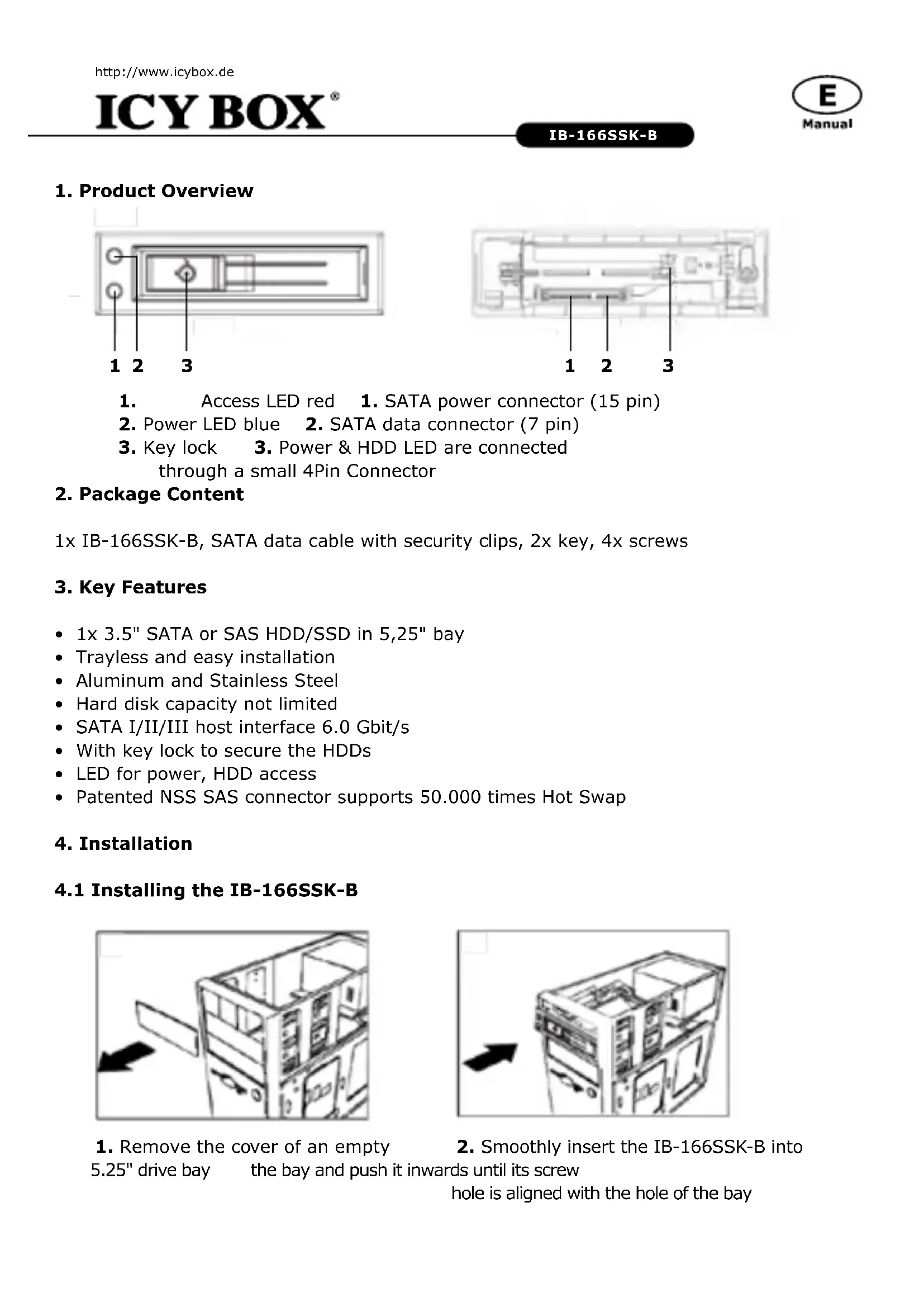 Download the instructions for your Computer accessory in PDF format for free! Find your manual IB166SSKB - Icy Box and take your electronic device back in hand. On this page are published all the documents necessary for the use of your device. IB166SSKB by Icy Box.