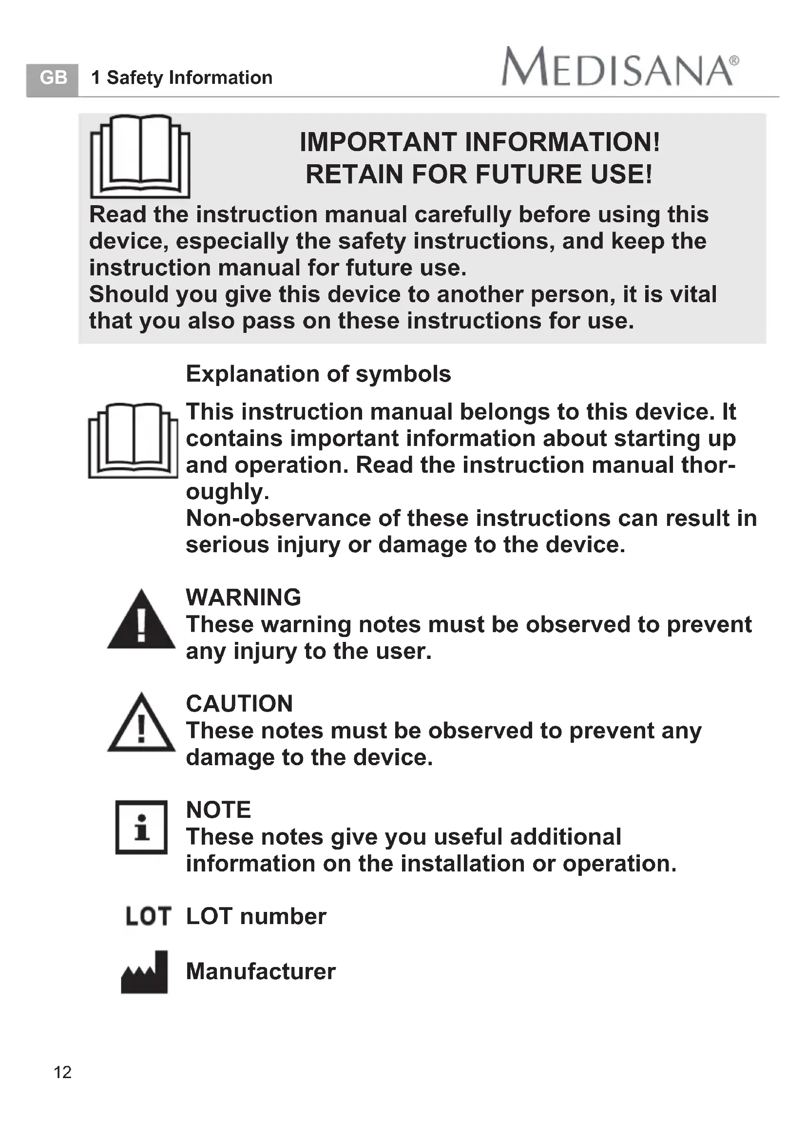 - The warranty period for MEDISANA products is three years from date of purchase. In case of a warranty claim, the date of purchase has to be proven by means of the sales receipt or invoice.