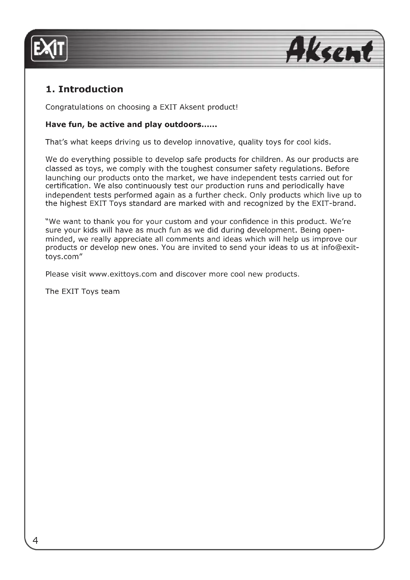 Congratulations on choosing a EXIT Aksent product!
