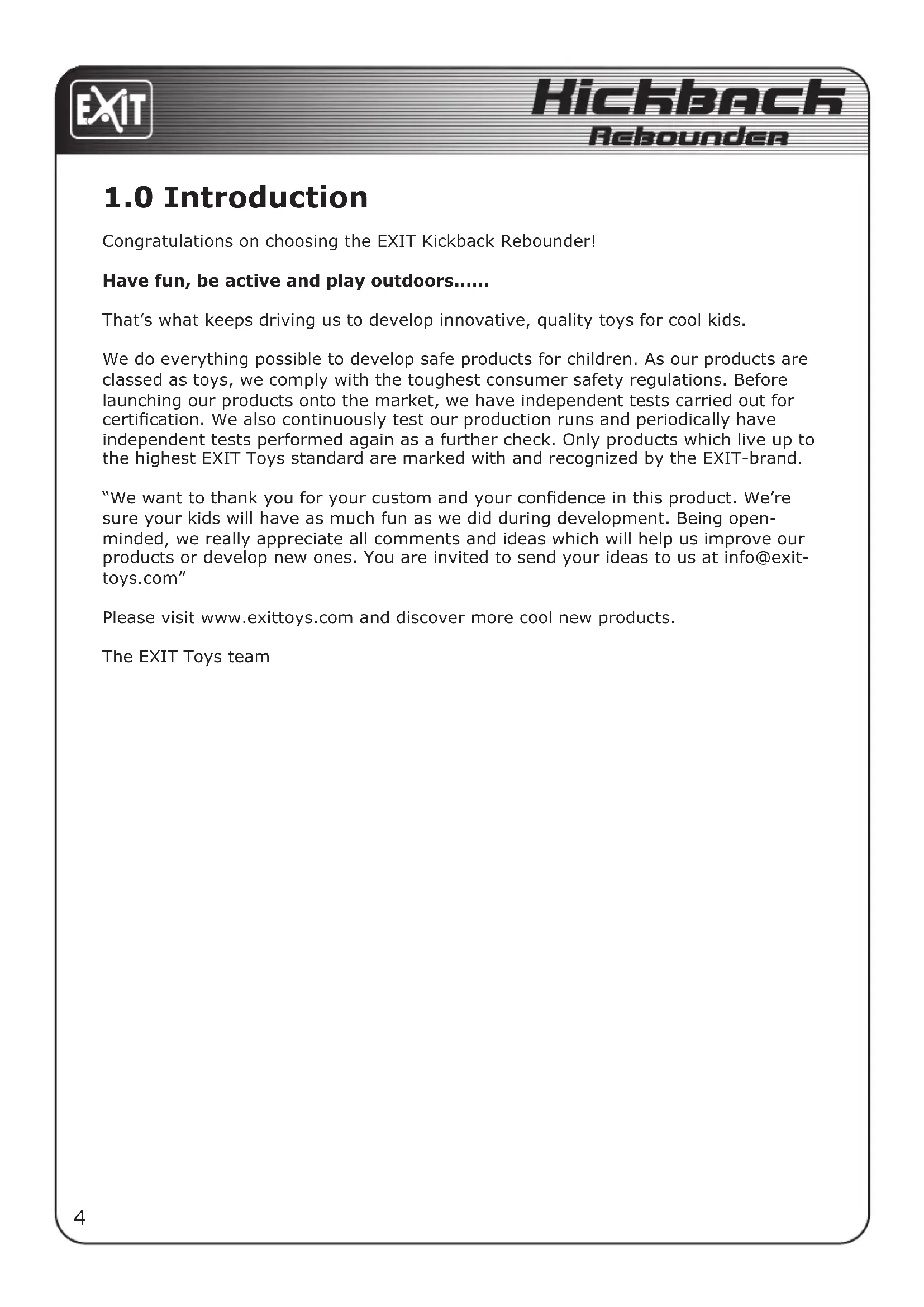 Congratulations on choosing the EXIT Kickback Rebounder!