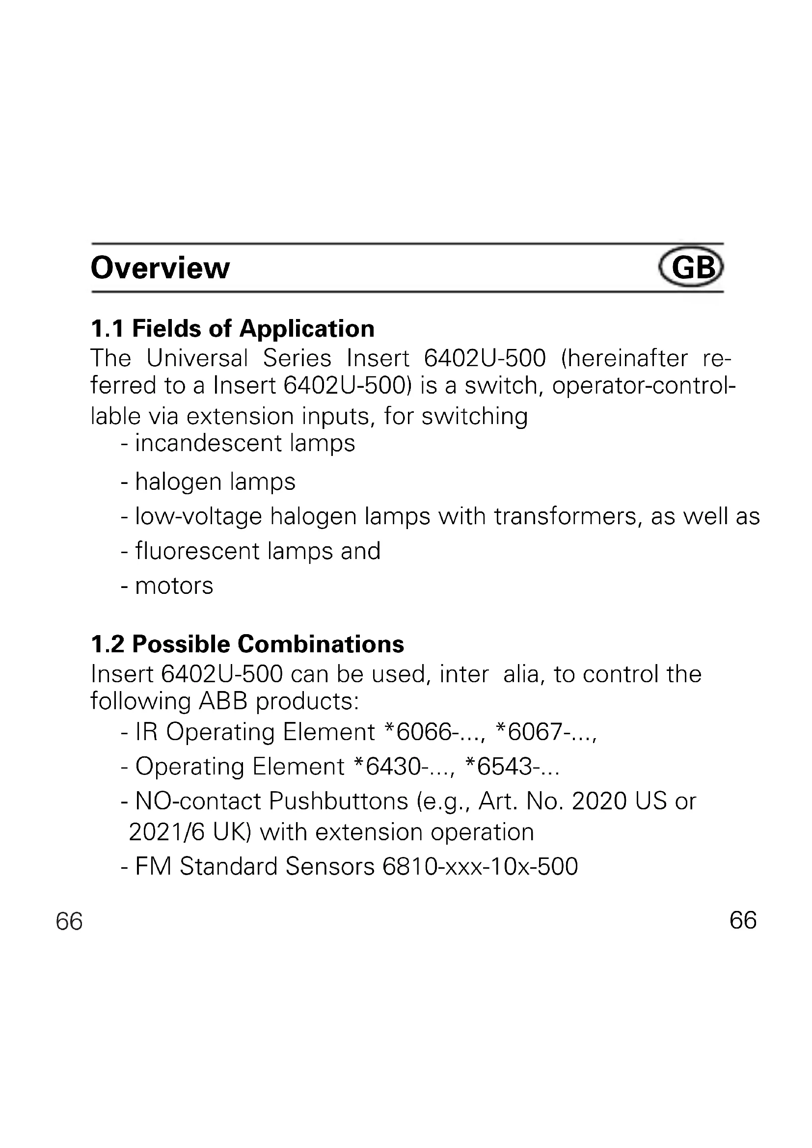 The Universal Series Insert 6402U-500 (hereinafter referred to a Insert 6402U-500) is a switch, operator-controllable via extension inputs, for switching