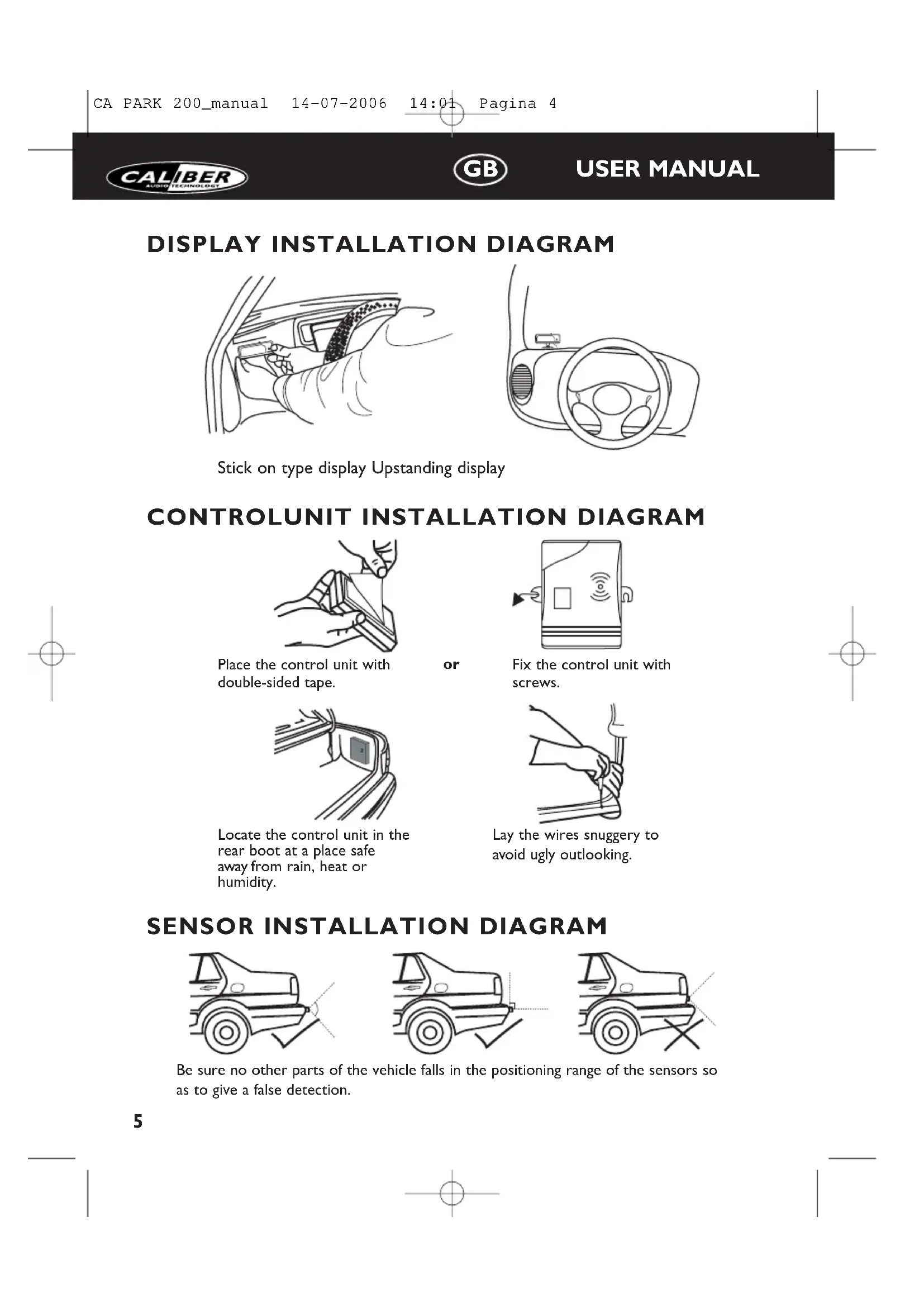 Download the instructions for your Parking sensor in PDF format for free! Find your manual Park 200 - CALIBER and take your electronic device back in hand. On this page are published all the documents necessary for the use of your device. Park 200 by CALIBER.