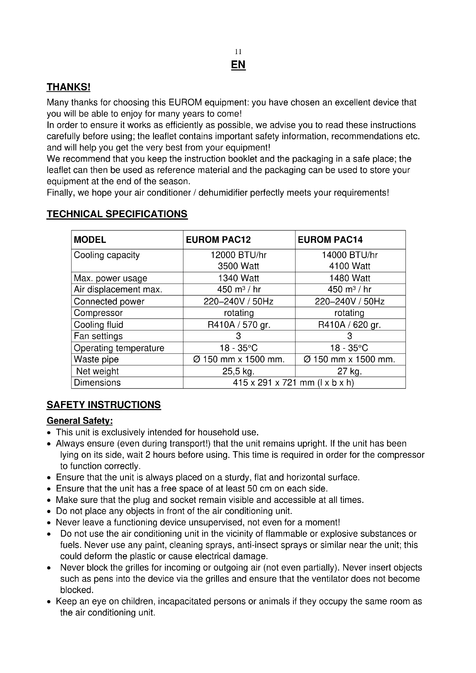 | MODEL | EUROM PAC12 | EUROM PAC14 |