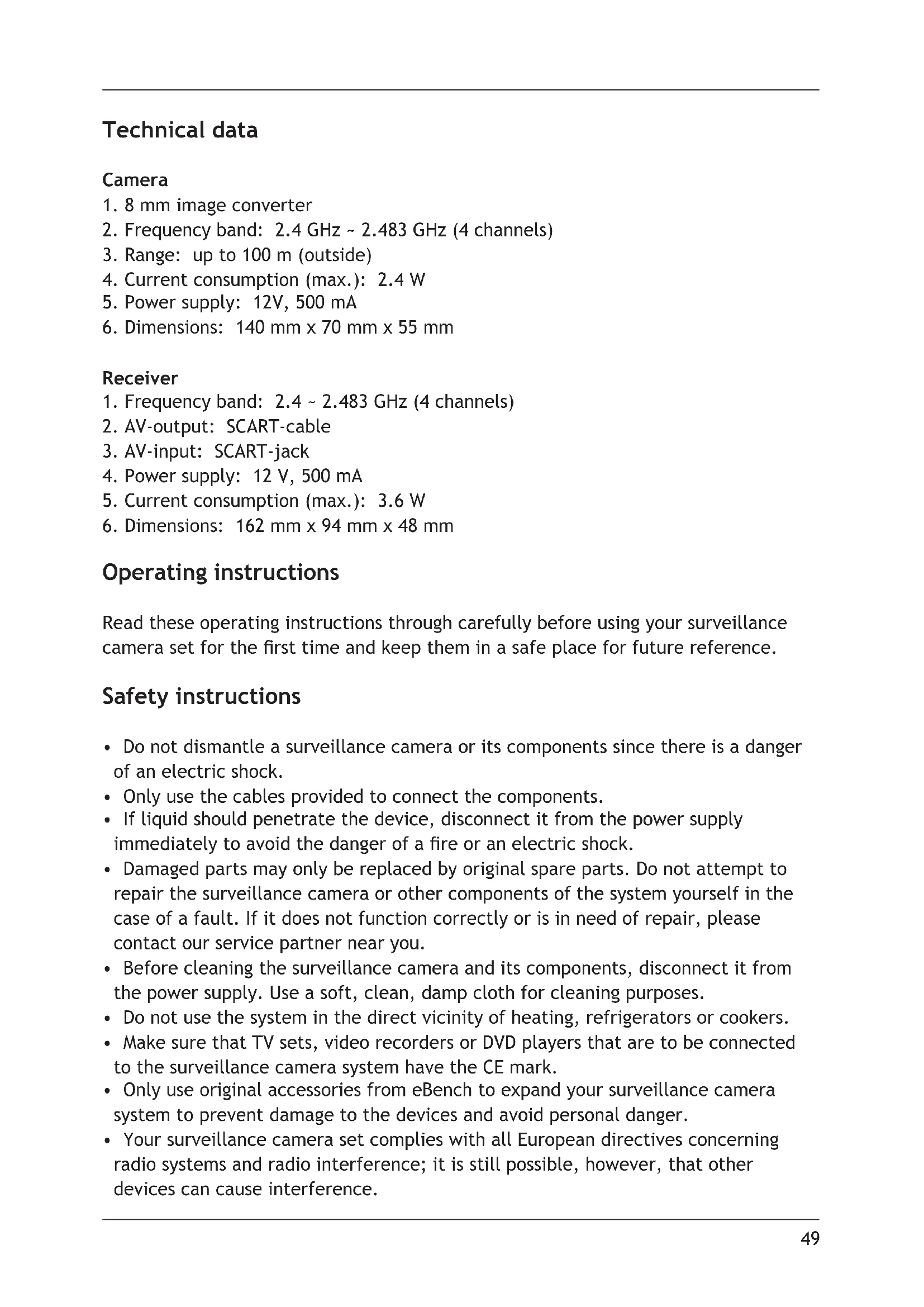 Operating instructions Read these operating instructions through carefully before using your surveillance camera set for the rst time and keep them in a safe place for future reference. Safety instructions