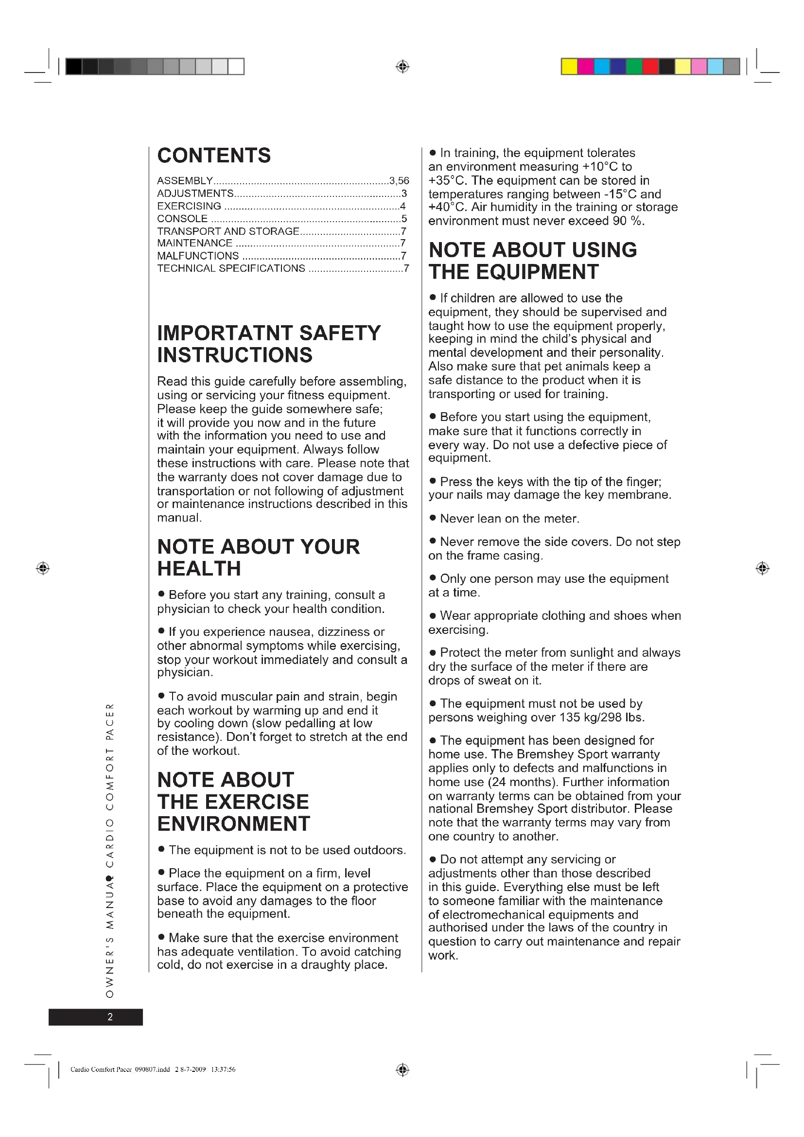 USER MANUAL Cardio Comfort Pacer Bremshey
