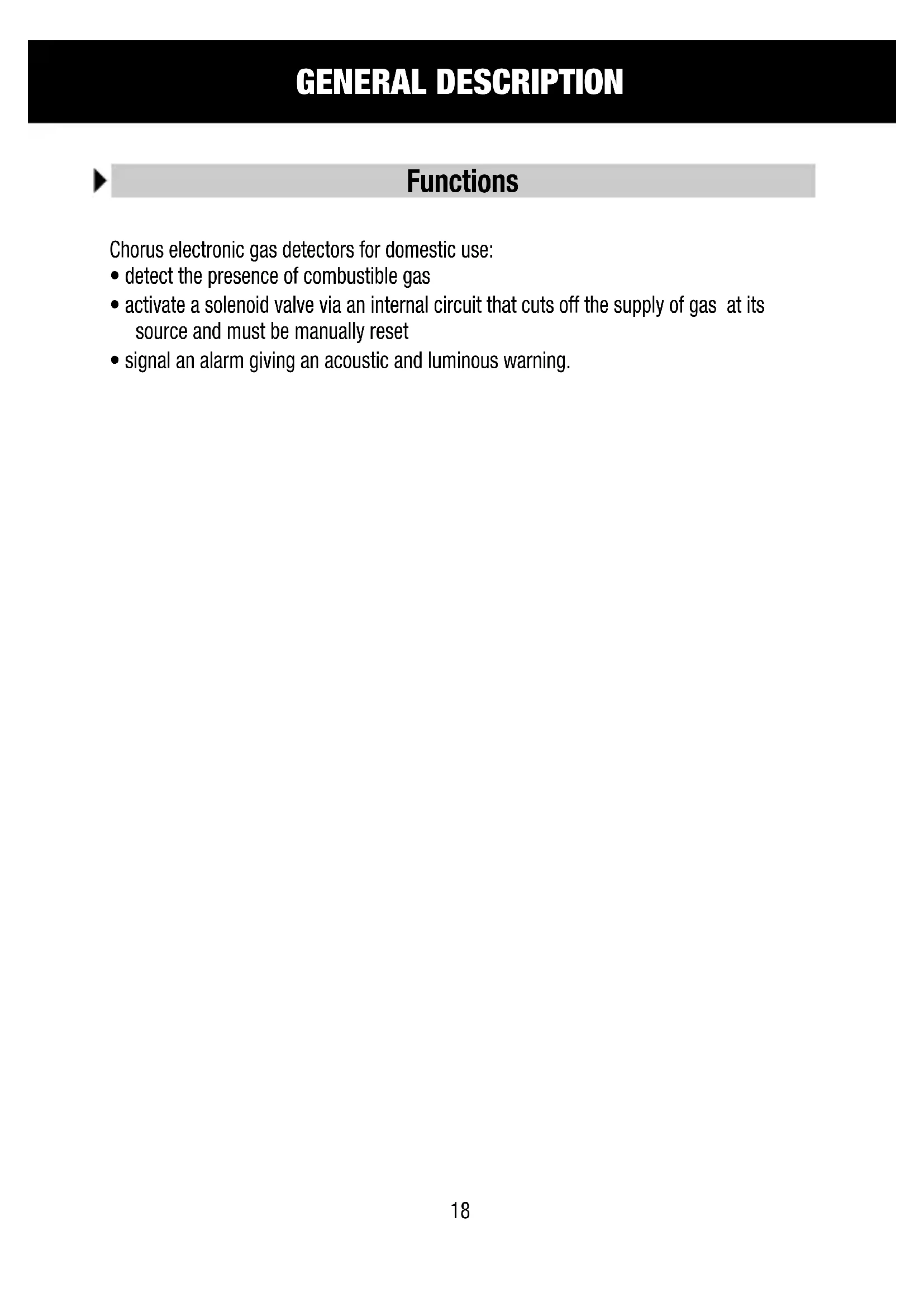 - activate a solenoid valve via an internal circuit that cuts off the supply of gas at its source and must be manually reset
