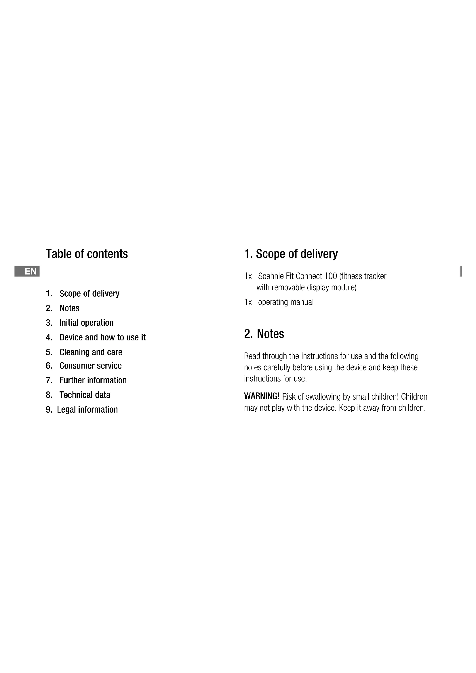 word mark and logos are registered trademarks owned by Bluetooth SIG, Inc.1. Scope of delivery 1x Soehnle Fit Connect 100 (fitness tracker with removable display module) 1x operating manual