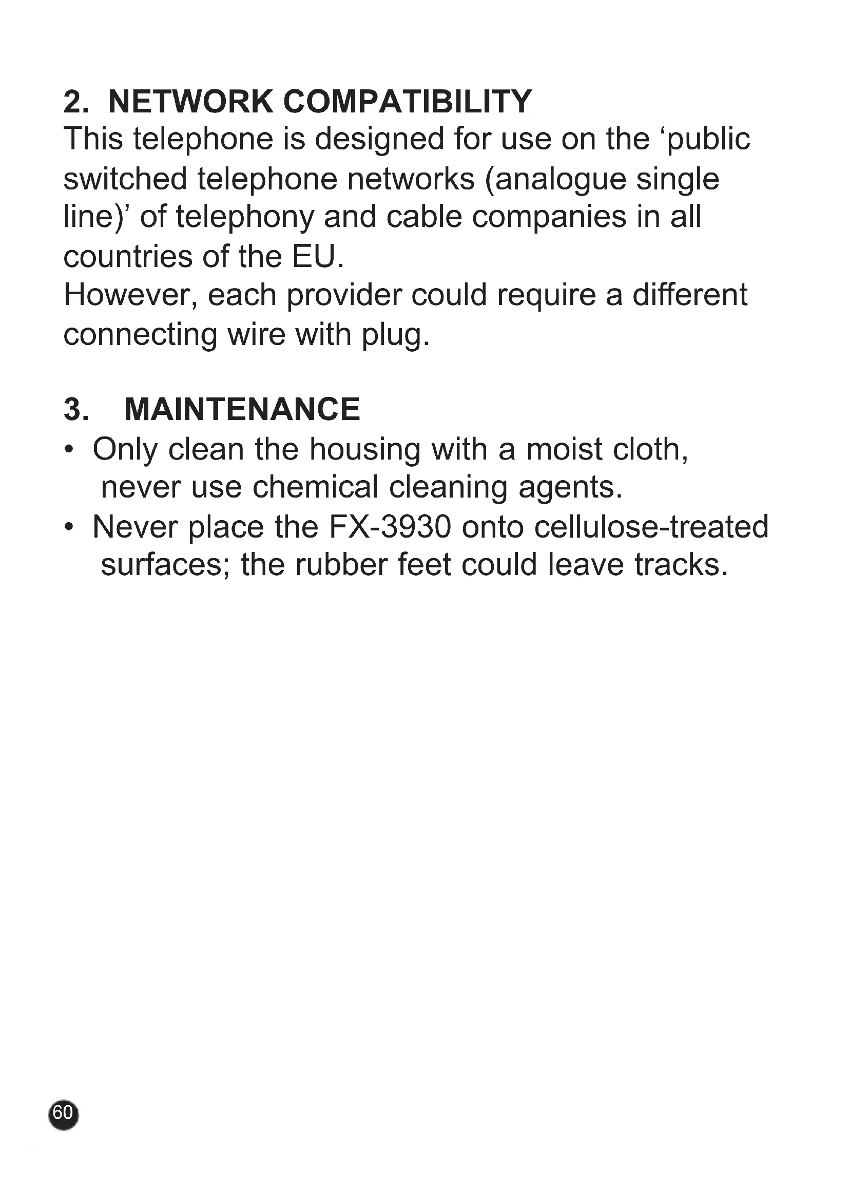 This telephone is designed for use on the 'public switched telephone networks (analogue single line)' of telephony and cable companies in all countries of the EU.