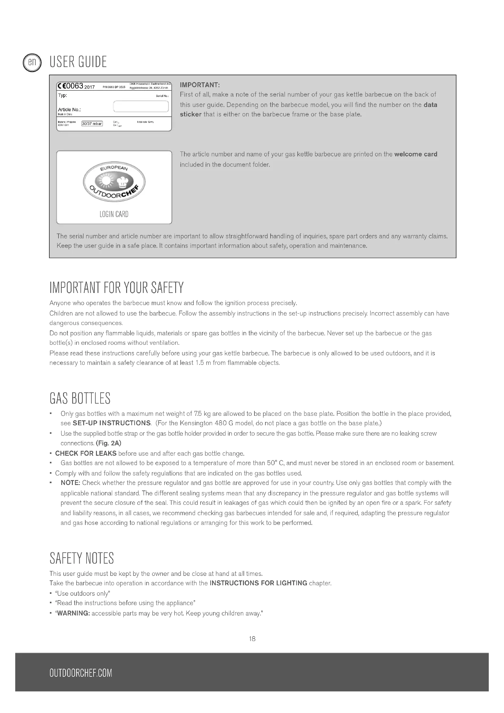 USER GUIDE 18 Please read these instructions carefully before using your OUTDOORCHEF Gas Kettle Barbecue.