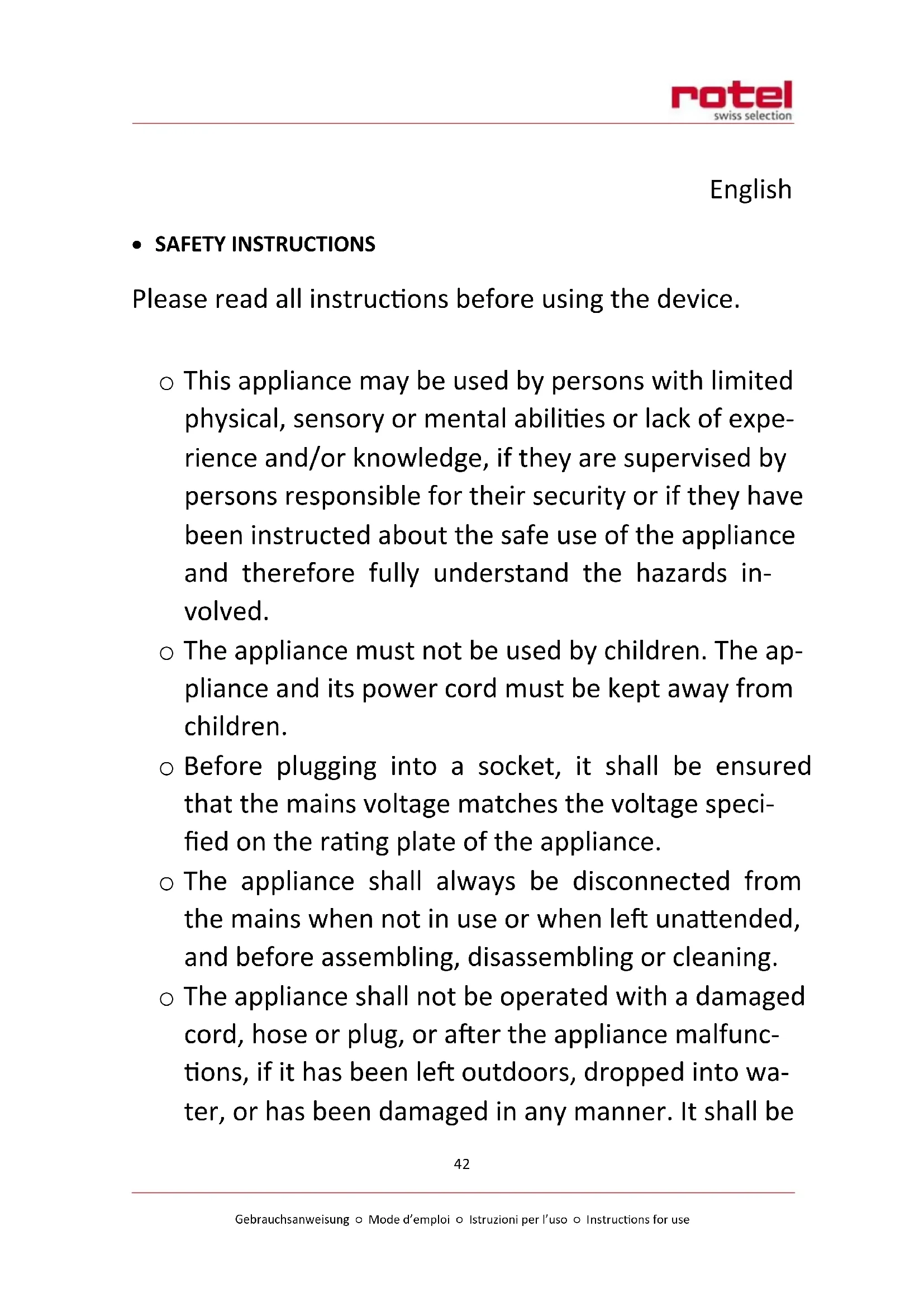 - This appliance may be used by persons with limited physical, sensory or mental abilities or lack of experience and/or knowledge, if they are supervised by persons responsible for their security or if they have been instructed about the safe use of the appliance and therefore fully understand the hazards involved.