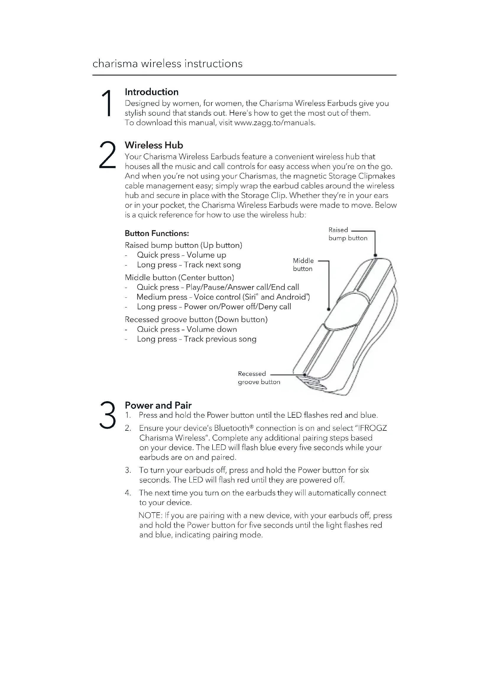 Designed by women, for women, the Charisma Wireless Earbuds give you stylish sound that stands out. Here's how to get the most out of them. To download this manual, visit www.zagg.to/manuals.