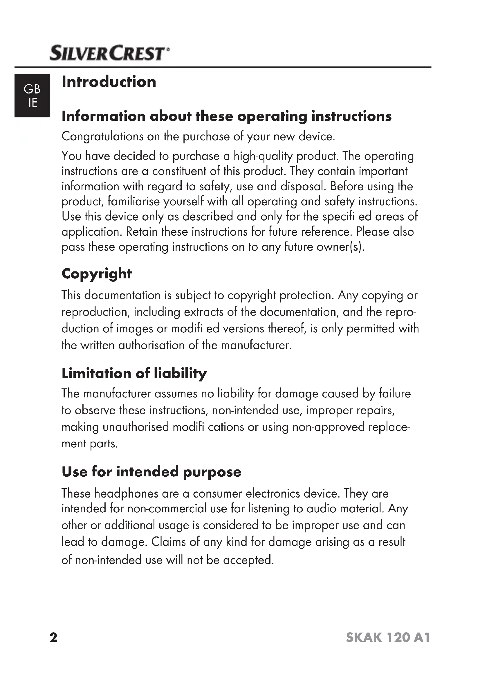 GB/IE Operating instructions Page 1