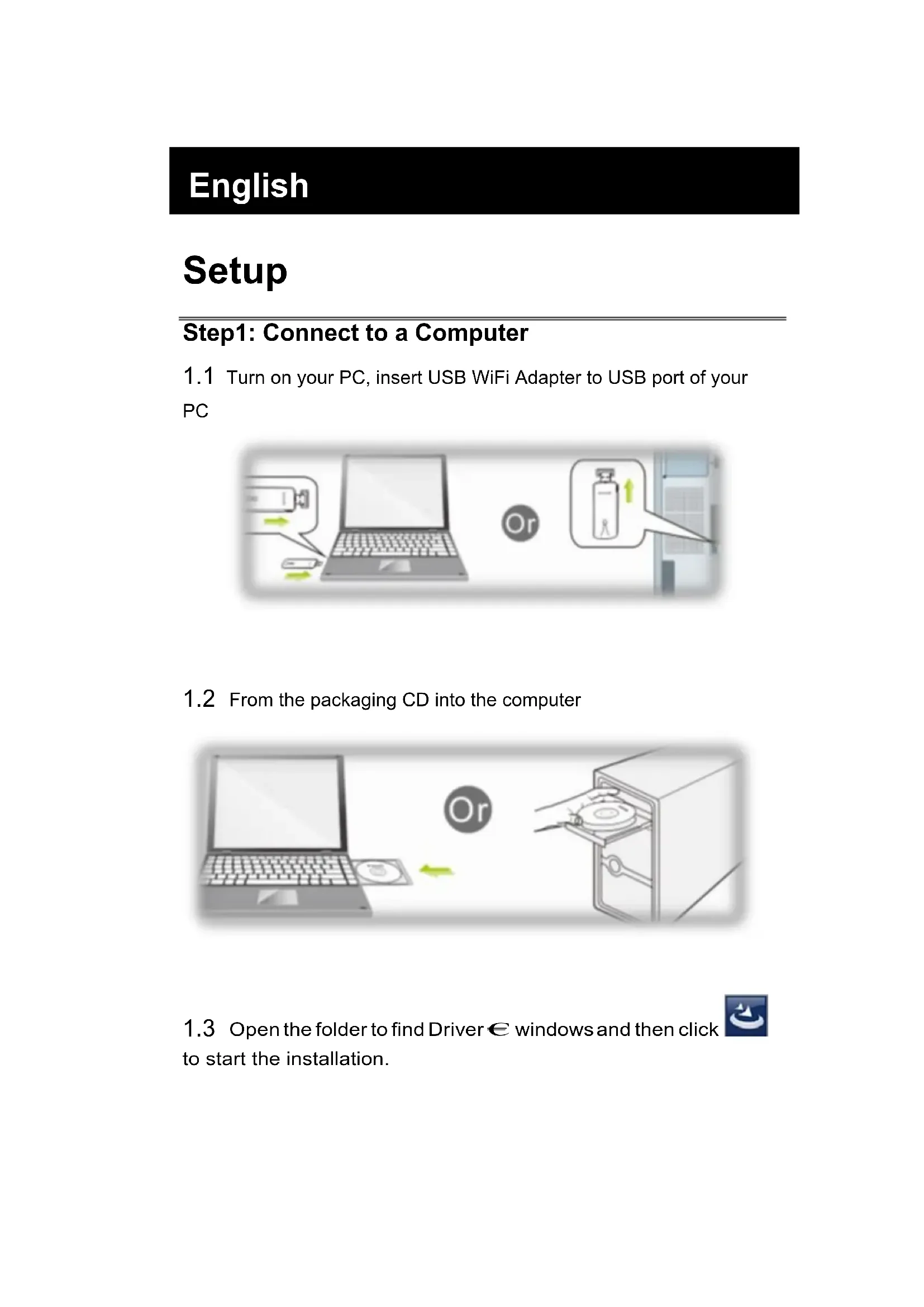 1.1 Turn on your PC, insert USB WiFi Adapter to USB port of your PC