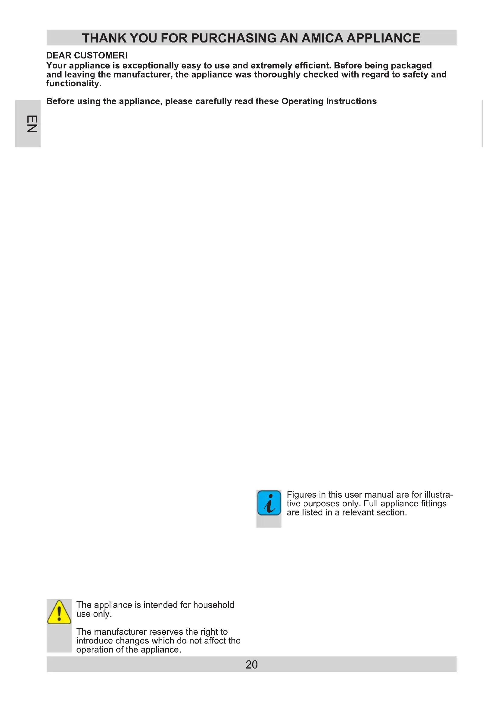 Figures in this user manual are for illustra- tive purposes only. Full appliance ttings are listed in a relevant section. EN21