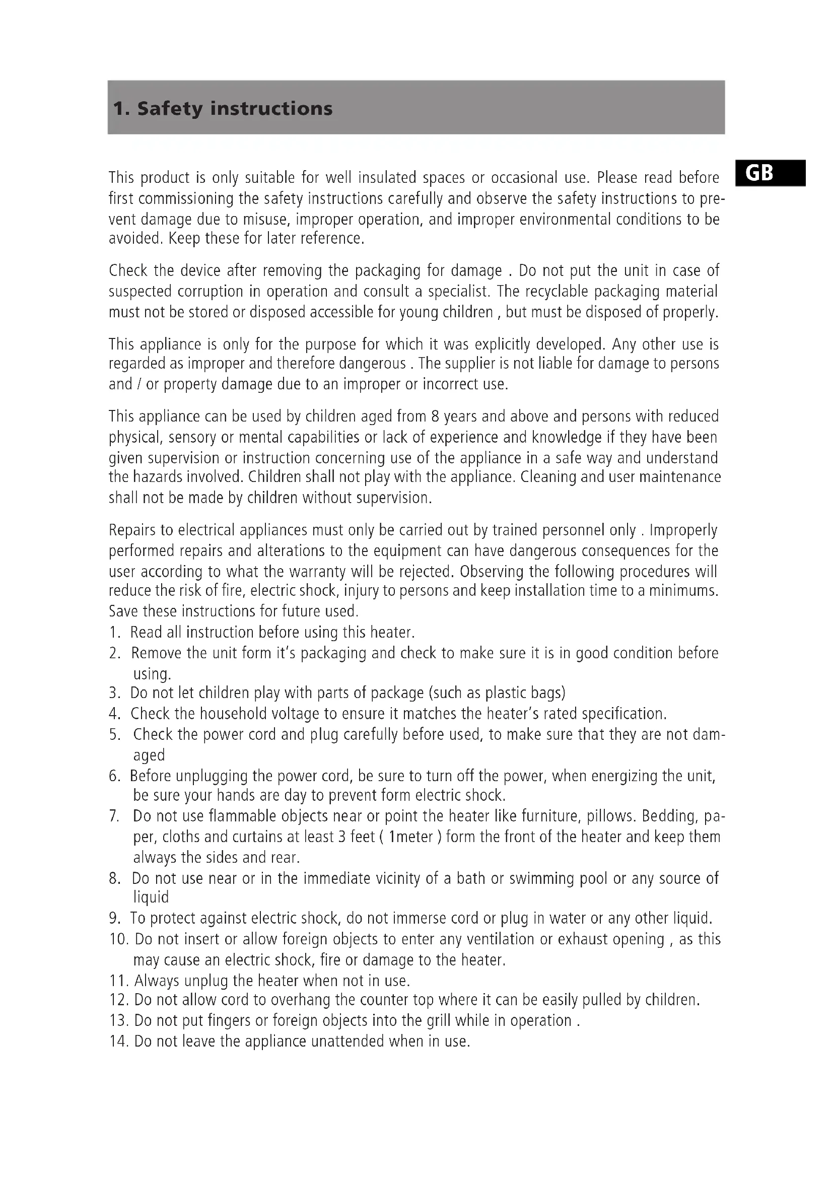 1. Safety instructions