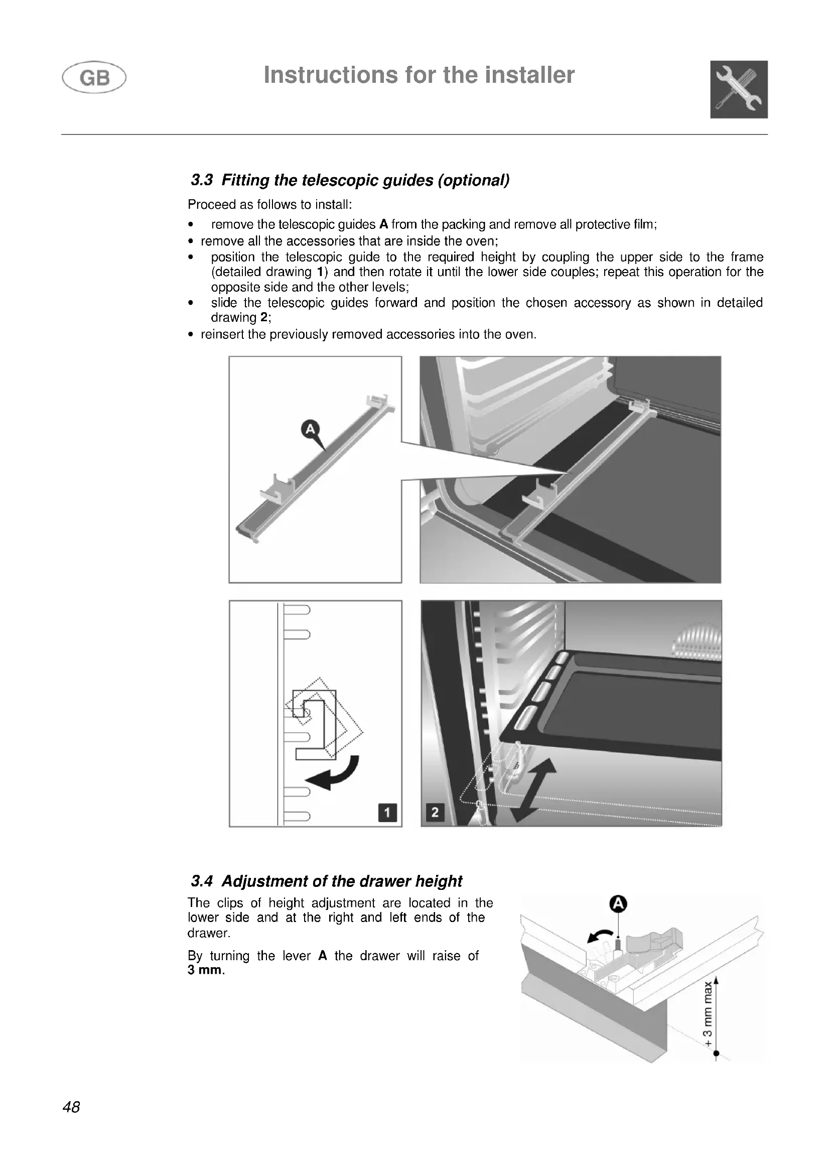 3.4 Adjustment of the drawer height