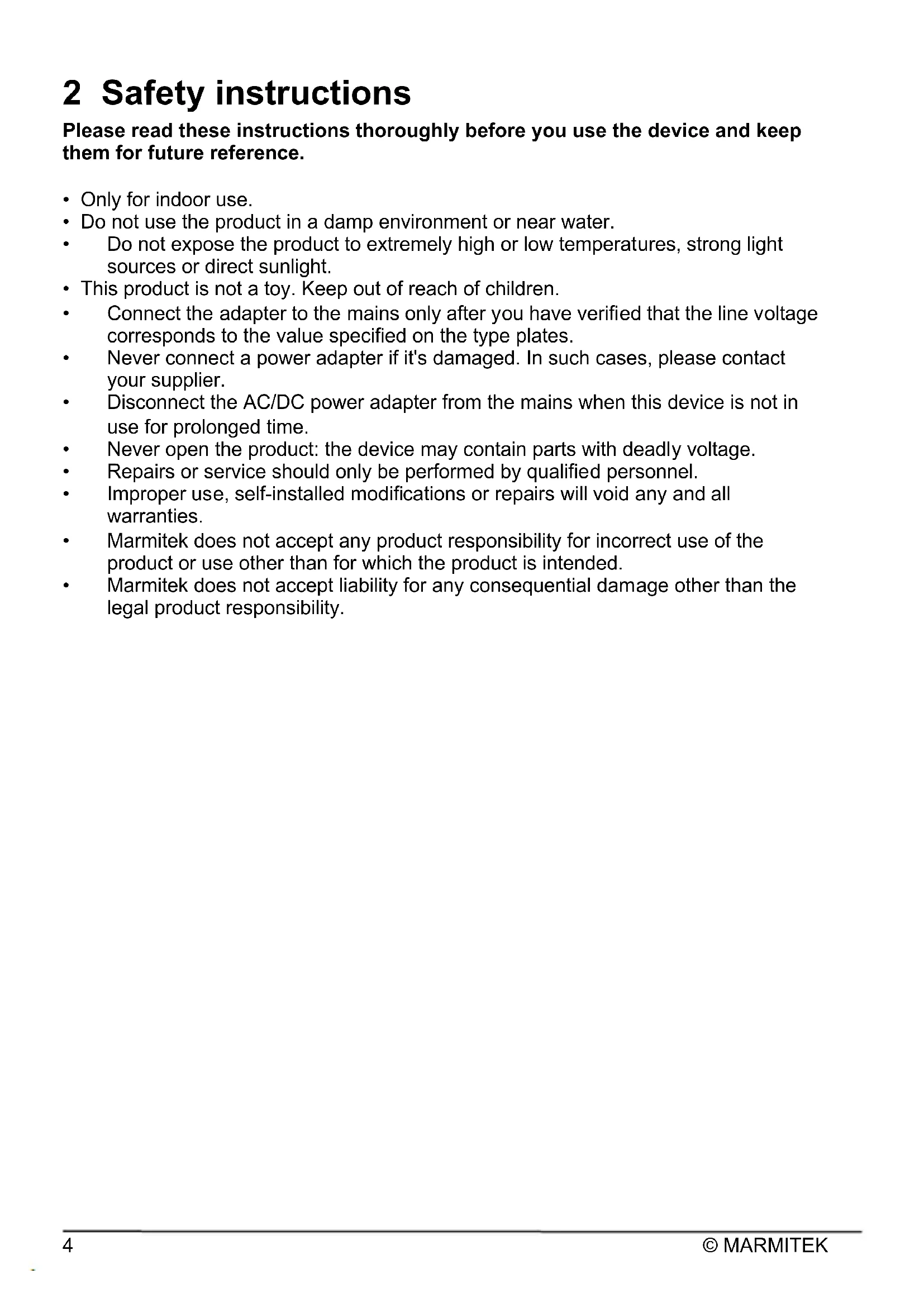 - Marmitek does not accept any product responsibility for incorrect use of the product or use other than for which the product is intended.