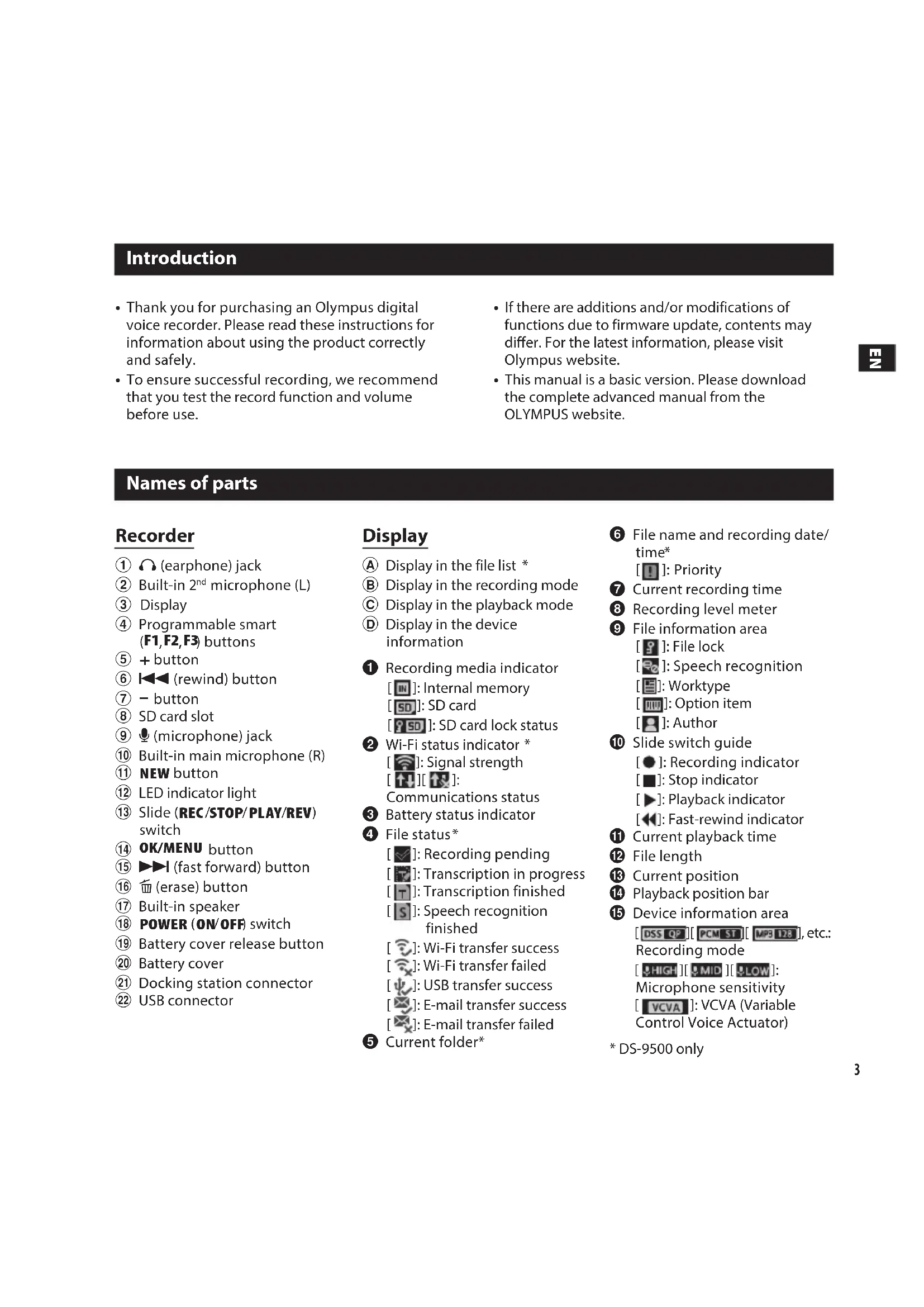 DS9500 - Voice recorder OLYMPUS - Free user manual and instructions