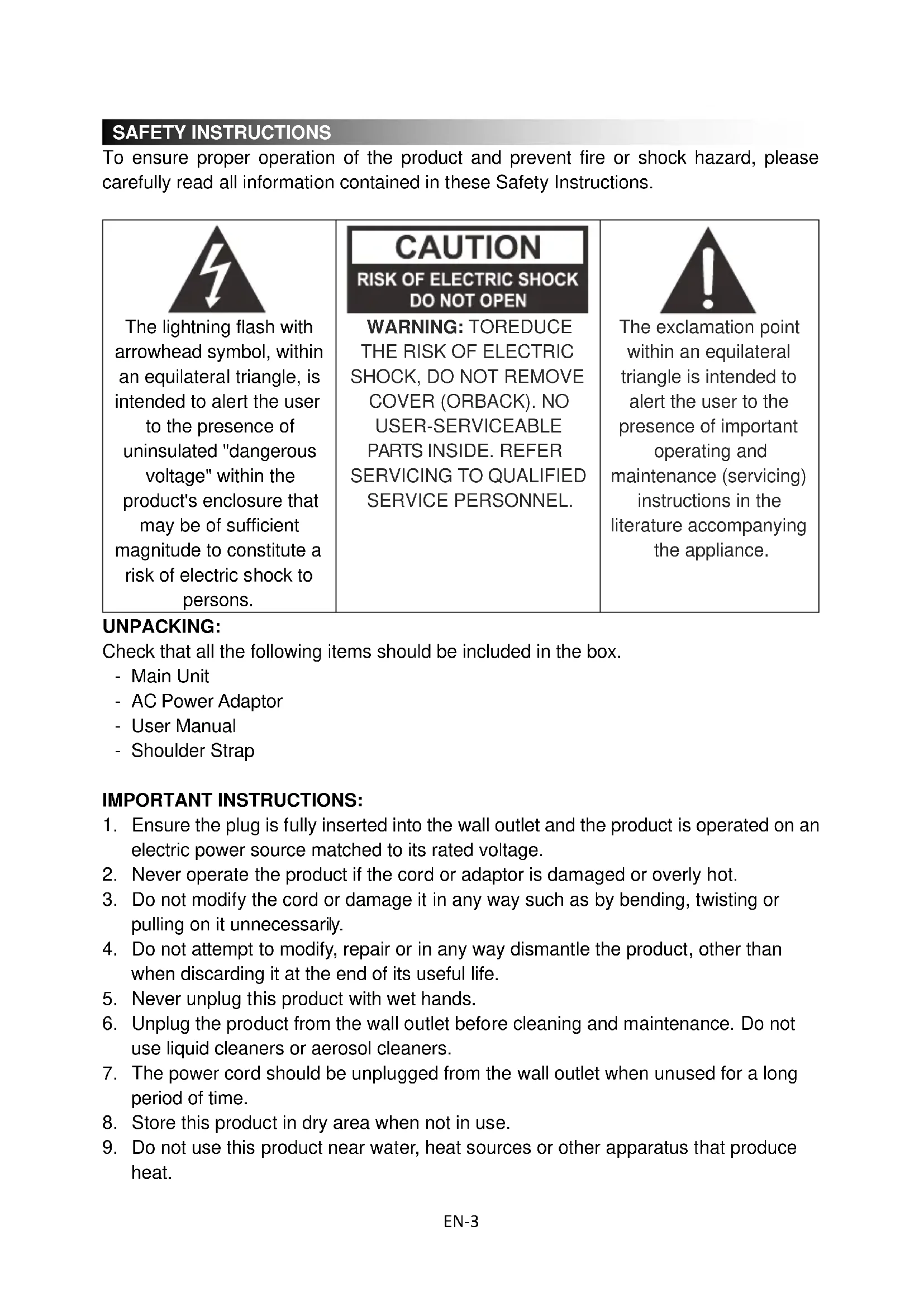 To ensure proper operation of the product and prevent fire or shock hazard, please carefully read all information contained in these Safety Instructions.