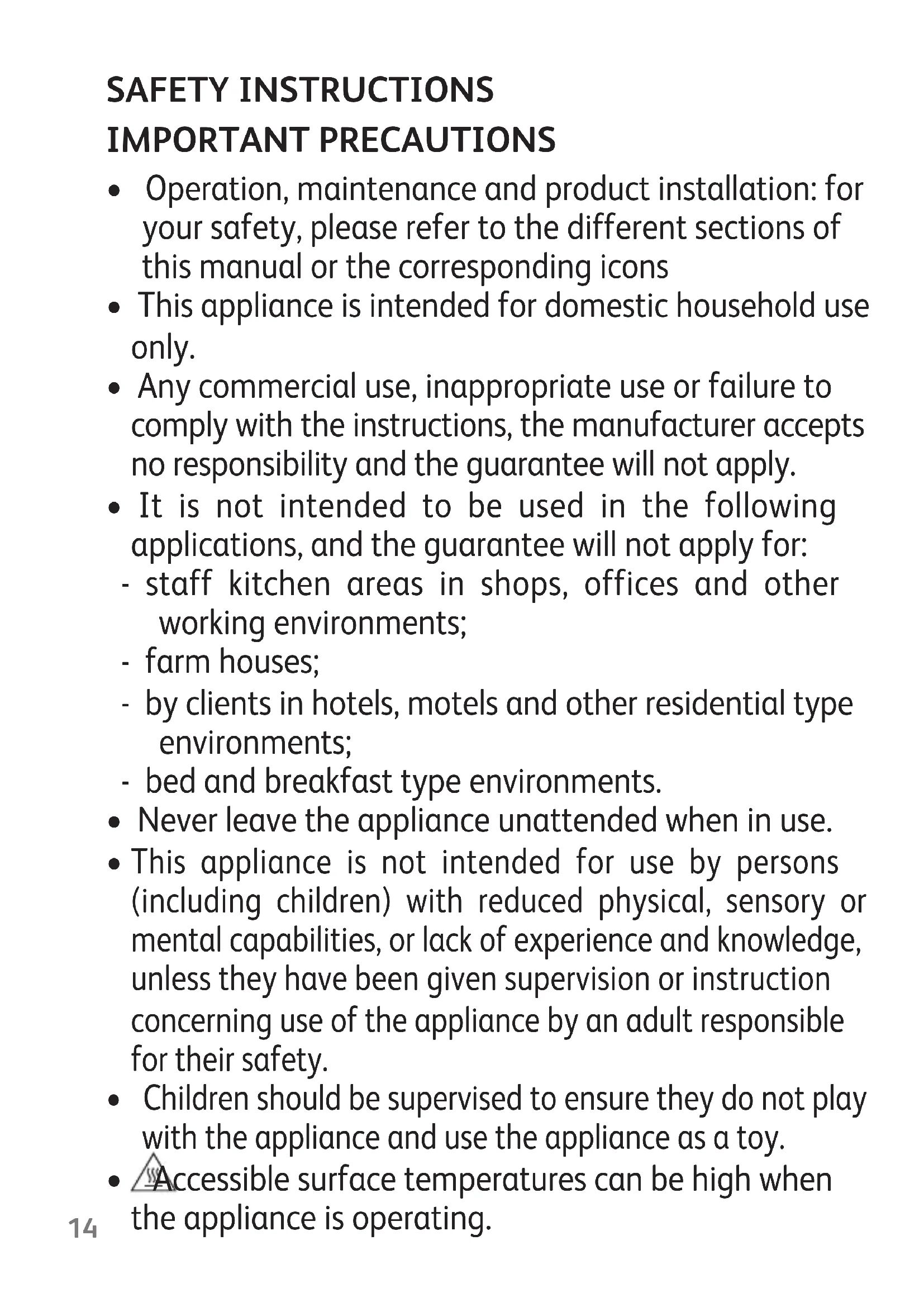 - Read the instructions in this leaflet carefully and keep them to hand. They apply to every version depending on the accessories that come with your appliance.