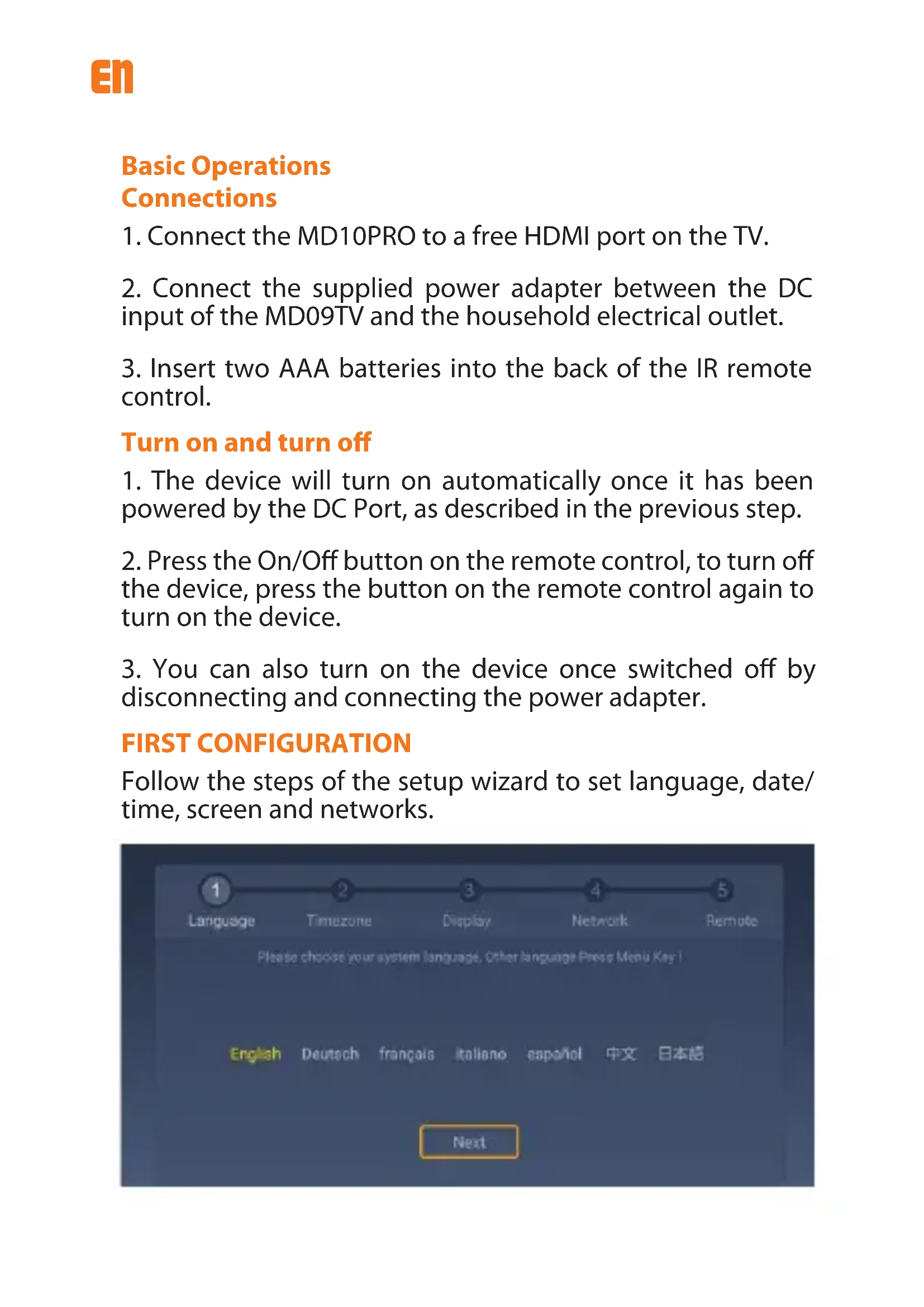 1. Connect the MD10PRO to a free HDMI port on the TV.