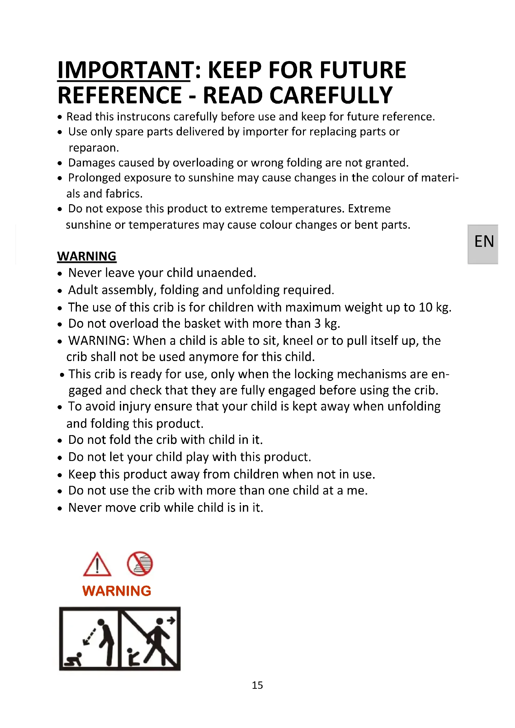 WARNING! Always store the folded crib out of reach from small children and babies.