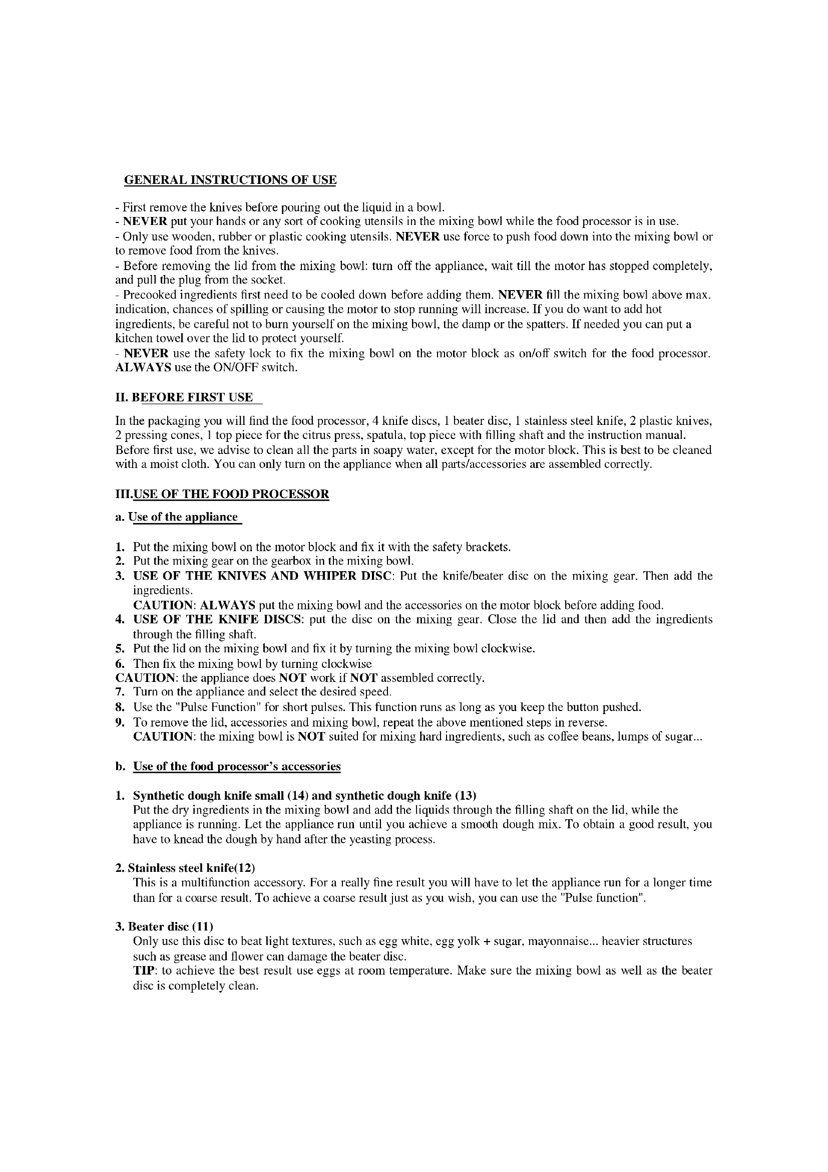 -This appliance is intended for mixing, kneading: kneading of food, pressing citrus fruit and mash potatoes/vegetables