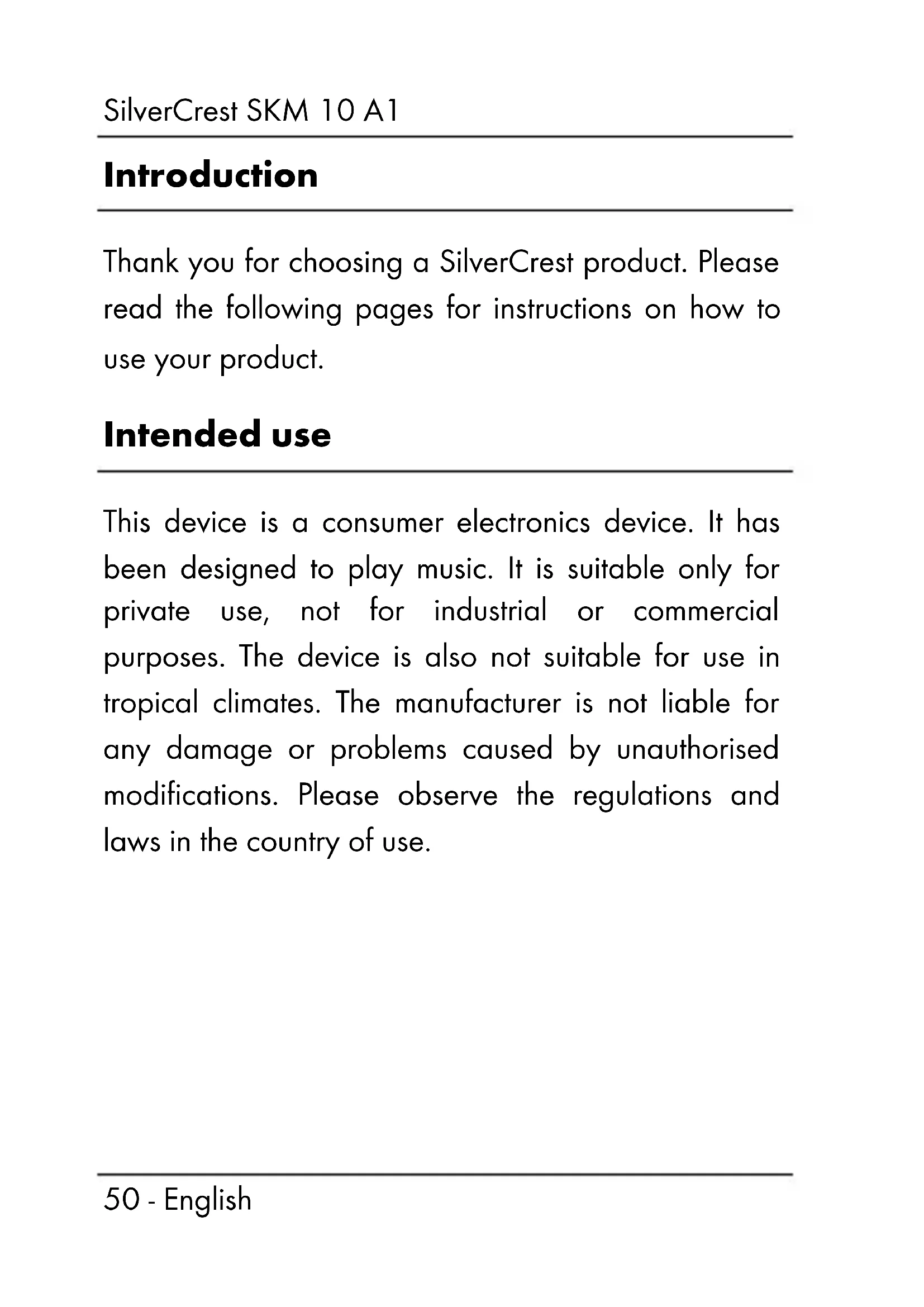 USER MANUAL SKM 10 A1 SILVERCREST