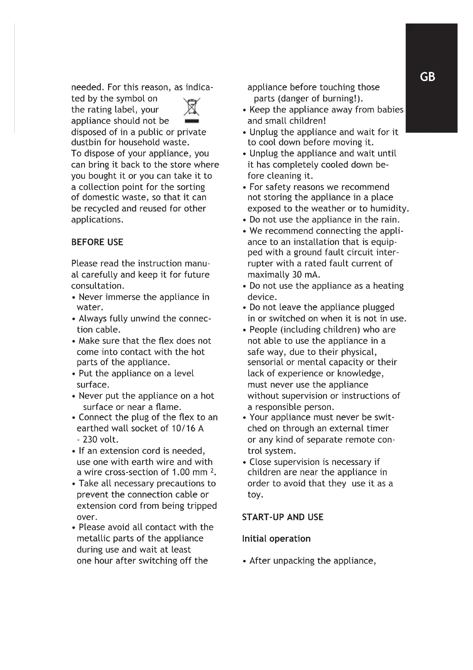 - Close supervision is necessary if children are near the appliance in order to avoid that they use it as a toy.