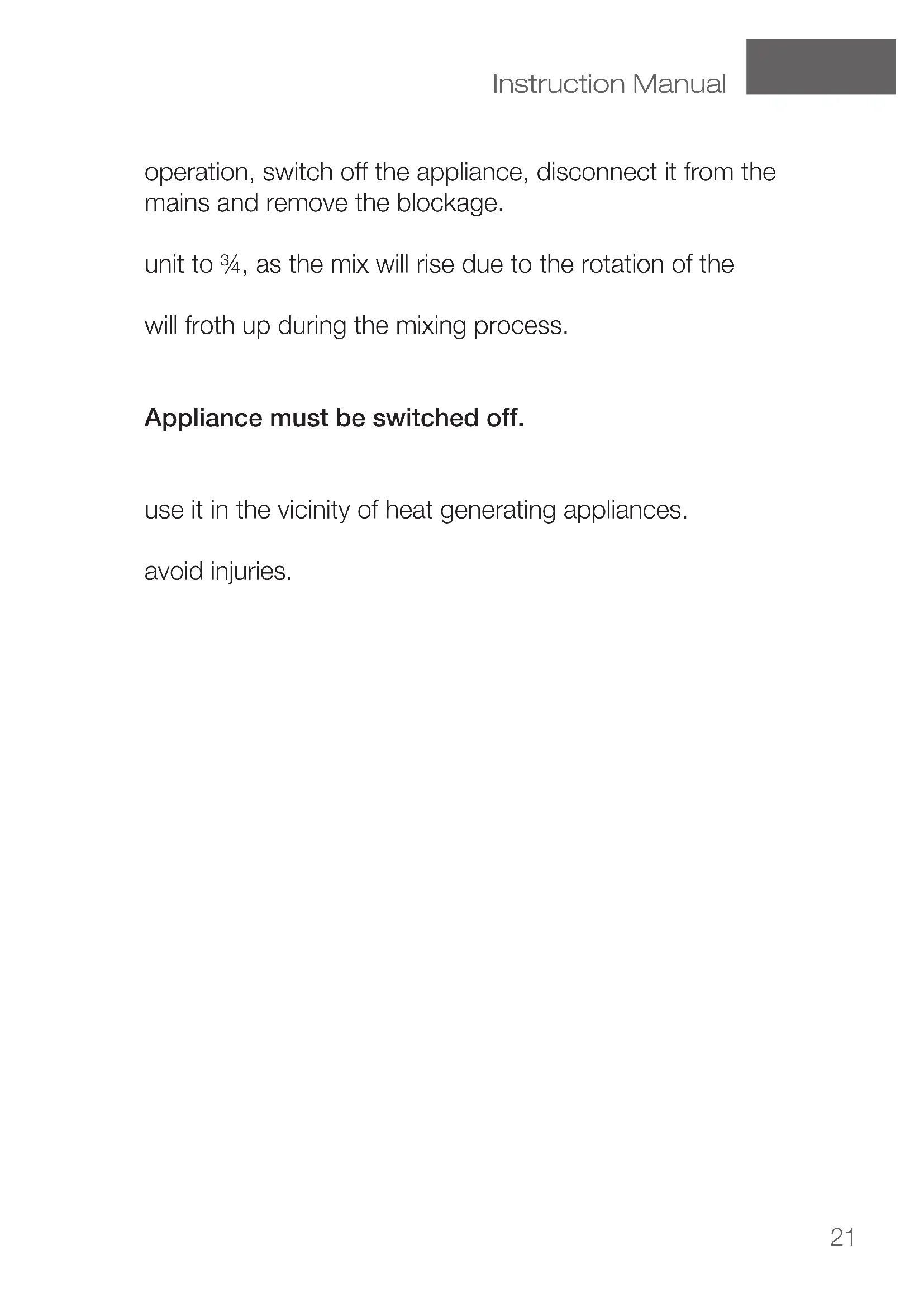 mixing unit could crack. This could lead to serious burns!Instruction Manual