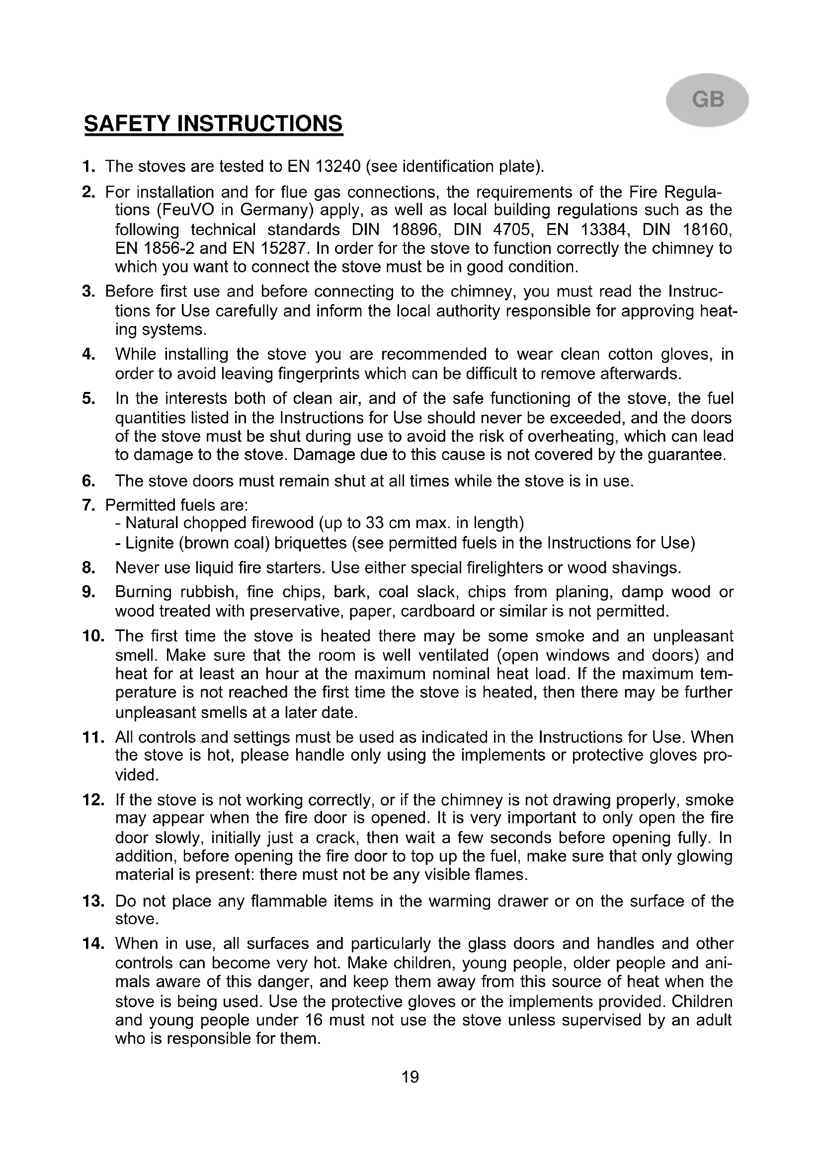 - Before first use and before connecting to the chimney, you must read the Instructions for Use carefully and inform the local authority responsible for approving heating systems.