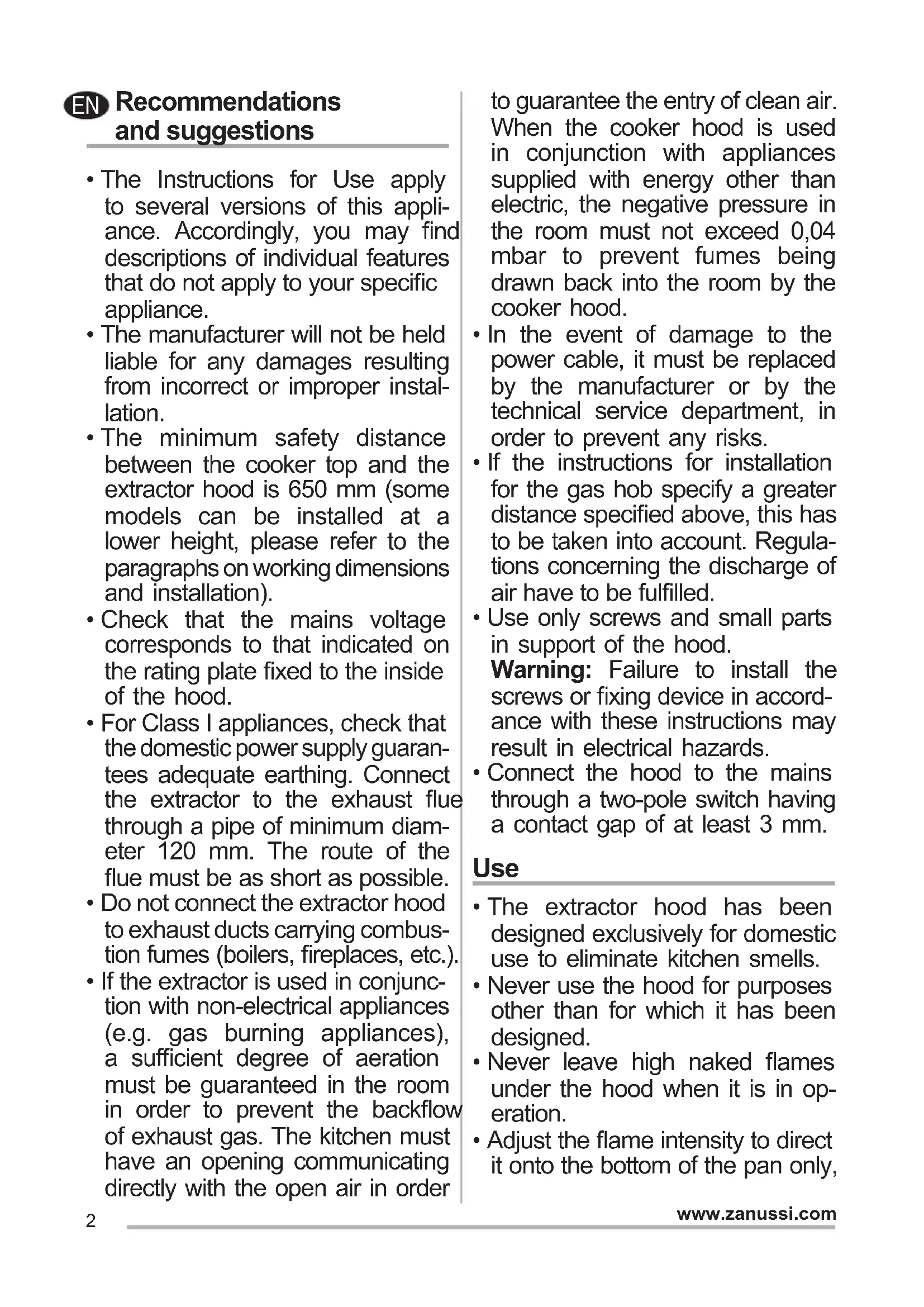 - The extractor hood has been designed exclusively for domestic use to eliminate kitchen smells.
