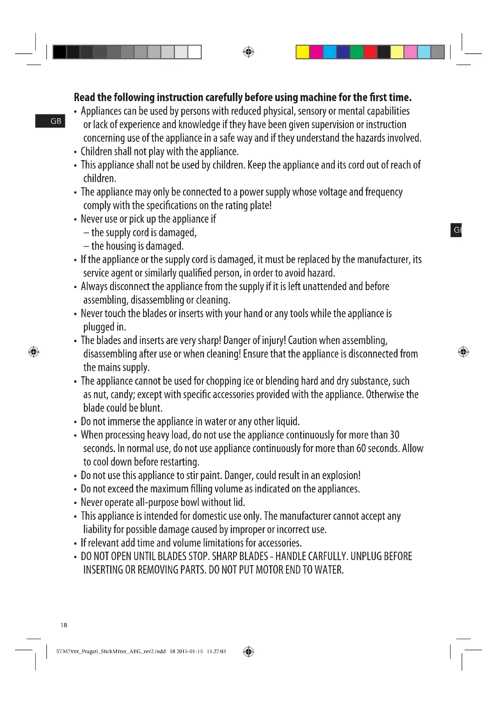STM7xxx_Pragati_StickMixer_AEG_rev2.indd 17 2015-01-15 11:27:03Read the following instruction carefully before using machine for the rst time.