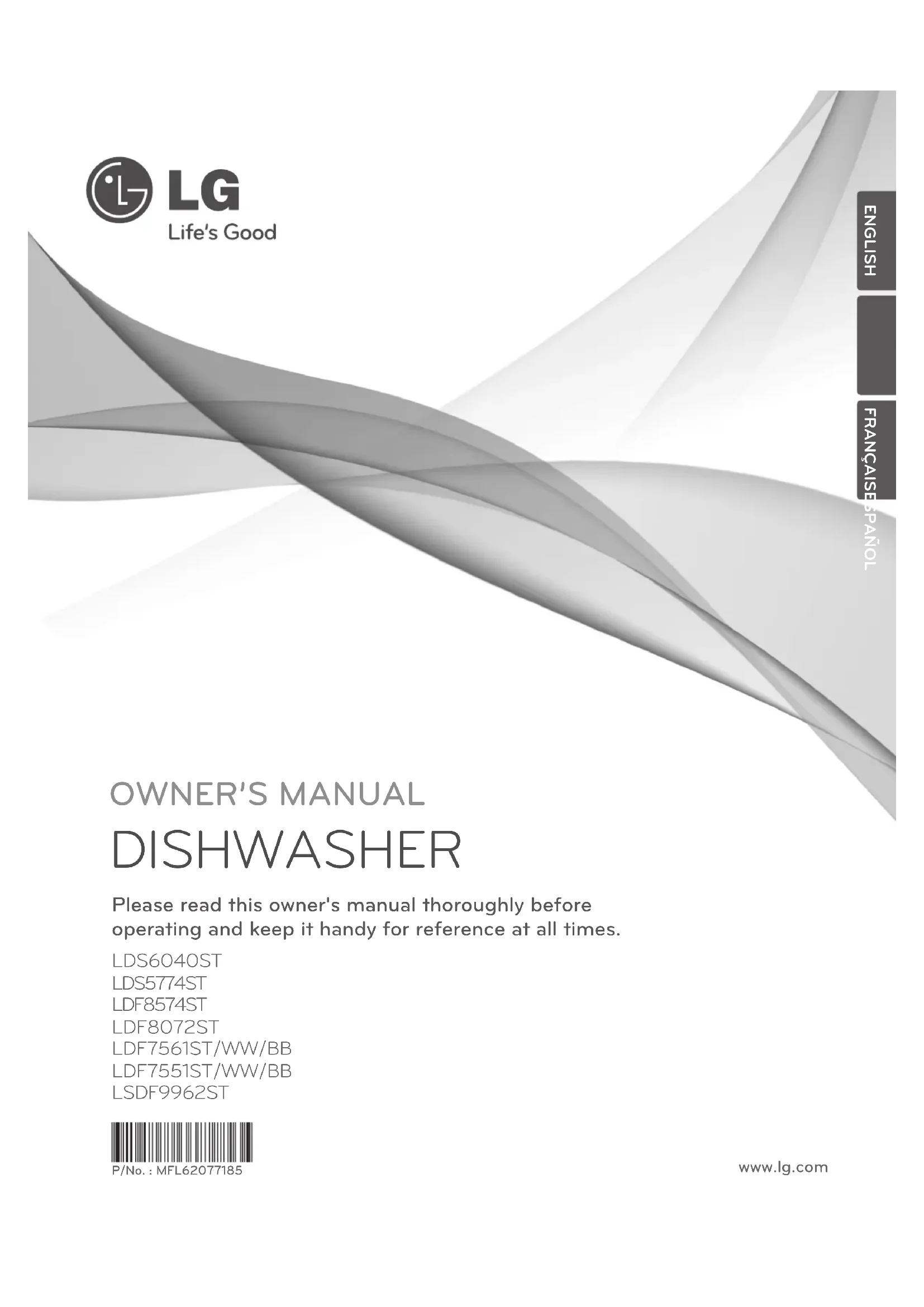 DISHWASHER Please read this owner's manual thoroughly before operating and keep it handy for reference at all times. LDS6040ST LDS5774ST LDF8574ST LDF8072ST