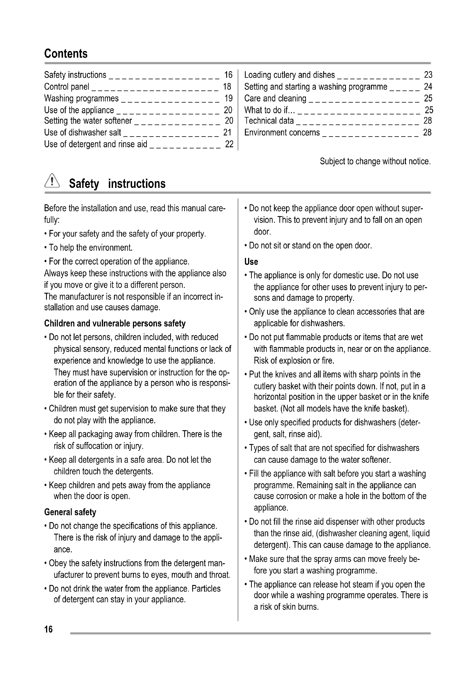 1) When the salt container is empty, the related indicator does not come on while a washing programme operates.