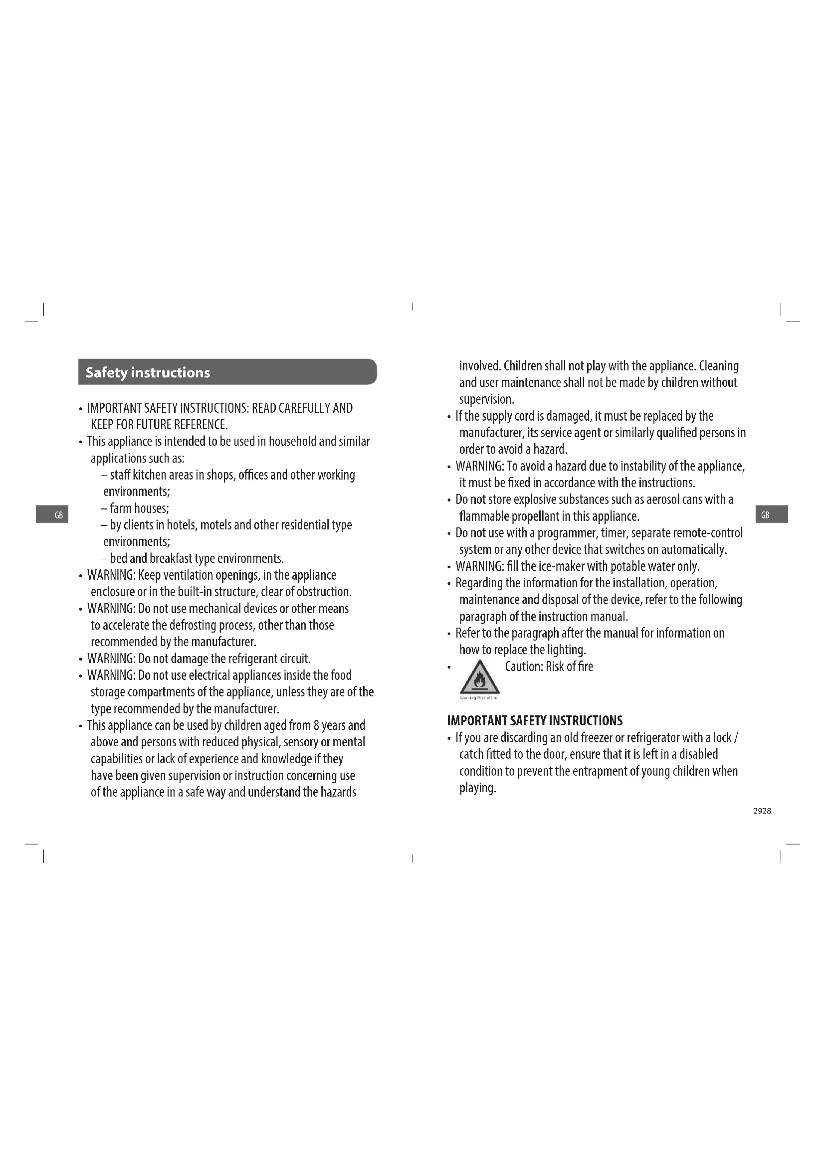 Thank you for choosing SABA quality This product has been developed by our team of professional and according to European regulations In order to get the most out of your new appliance, we recommend that you read this instruction manual carefully and keep it for future reference Safety instructions 28 Technical information 32 Description of the device 33 Installation 34 Use 34 Reverse door 40 Maintenance 43 Cleaning 47 Troubleshooting 47 Accessories 48 Disposal 48 Disposal of old electrical appliances 49